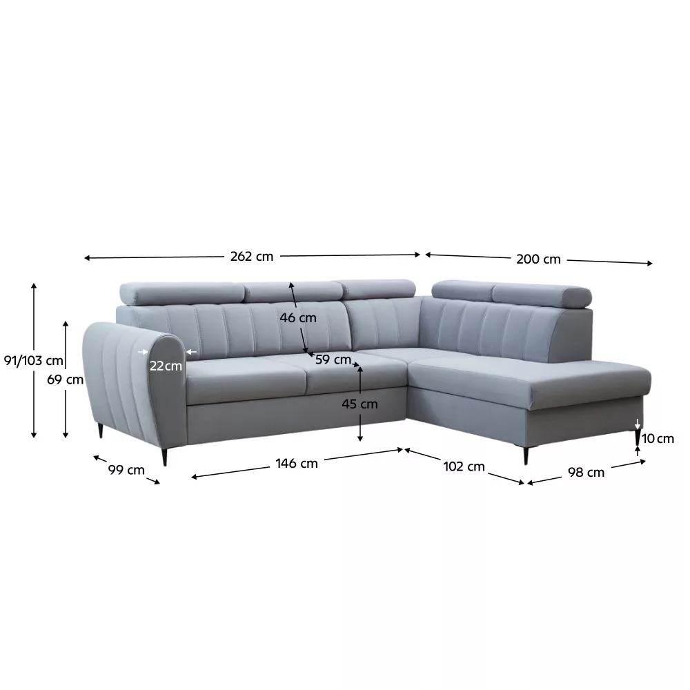 Méretek (SzxMéxMa): 262x200x91/103 cm