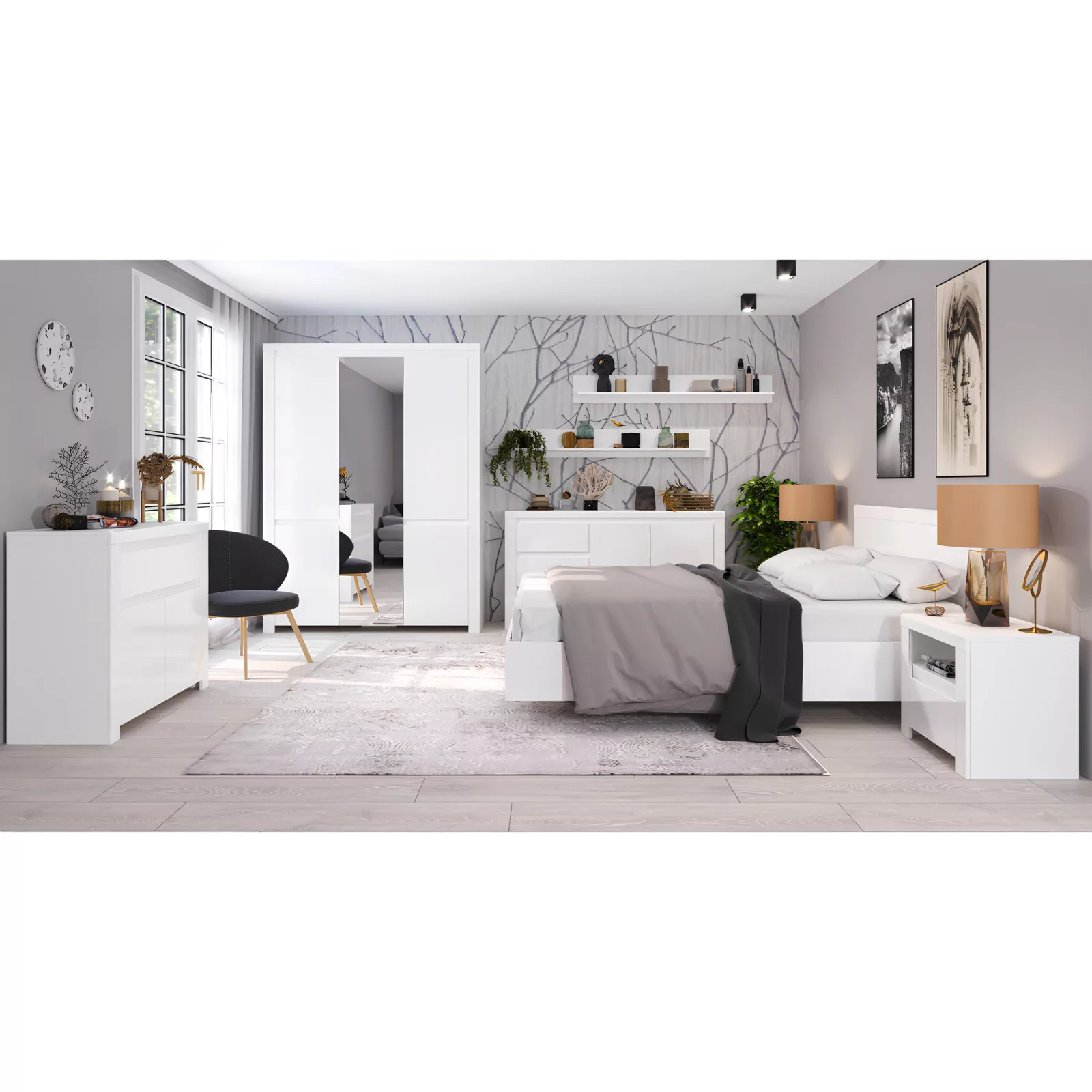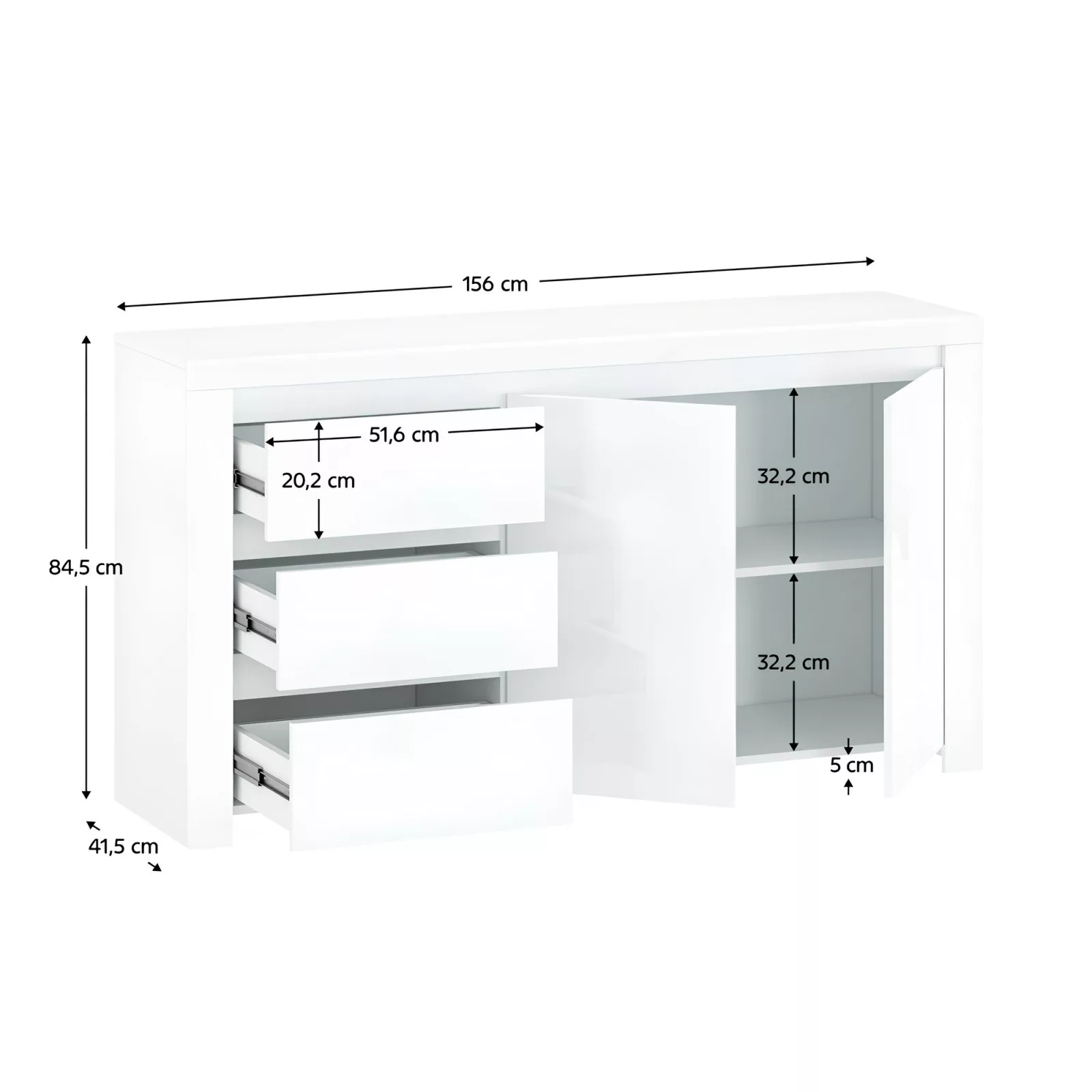 Komód 2D3S, fehér fényes, LINDY