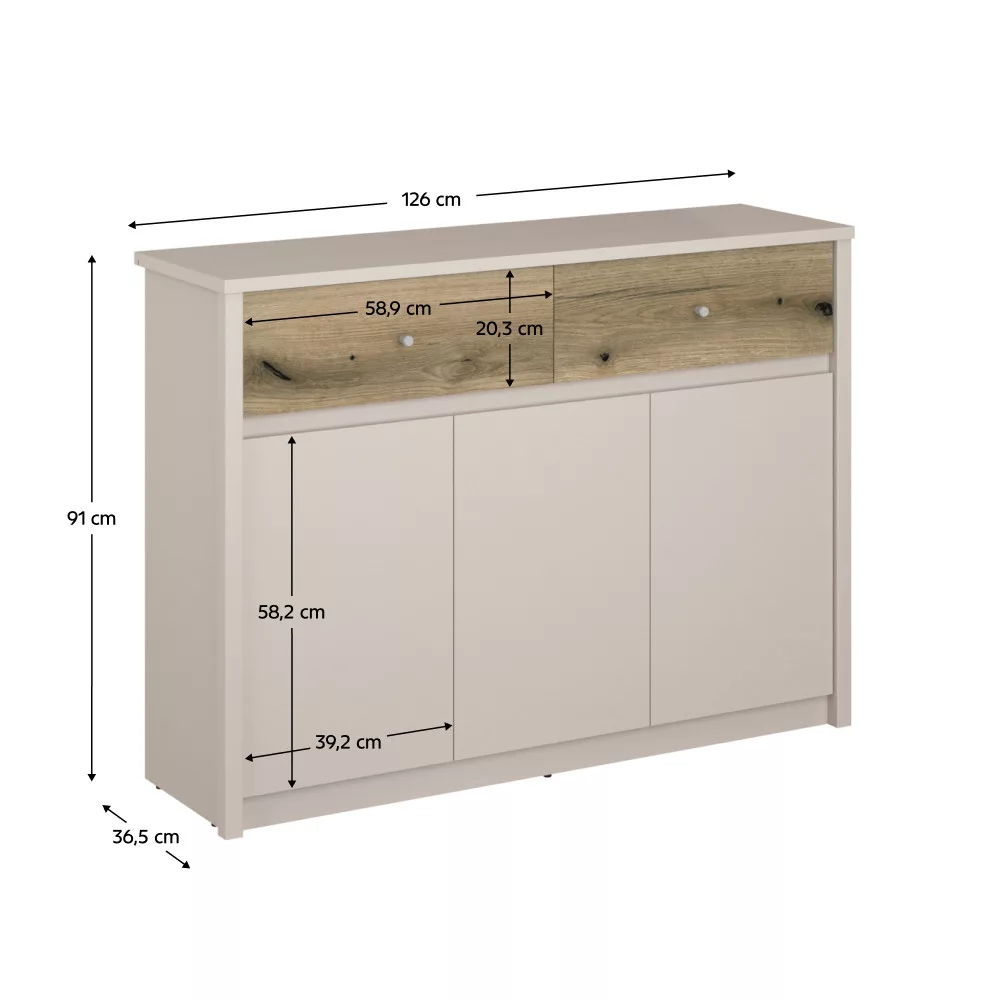 Méretek (SzxMéxMa): 126x36,5x91 cm