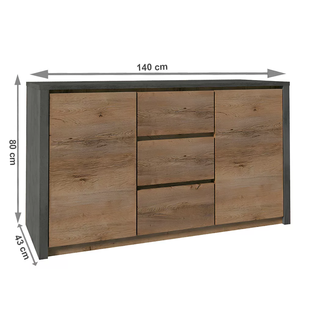 Komód, tölgy lefkas sötét/smooth szürke, MONTANA K2DP