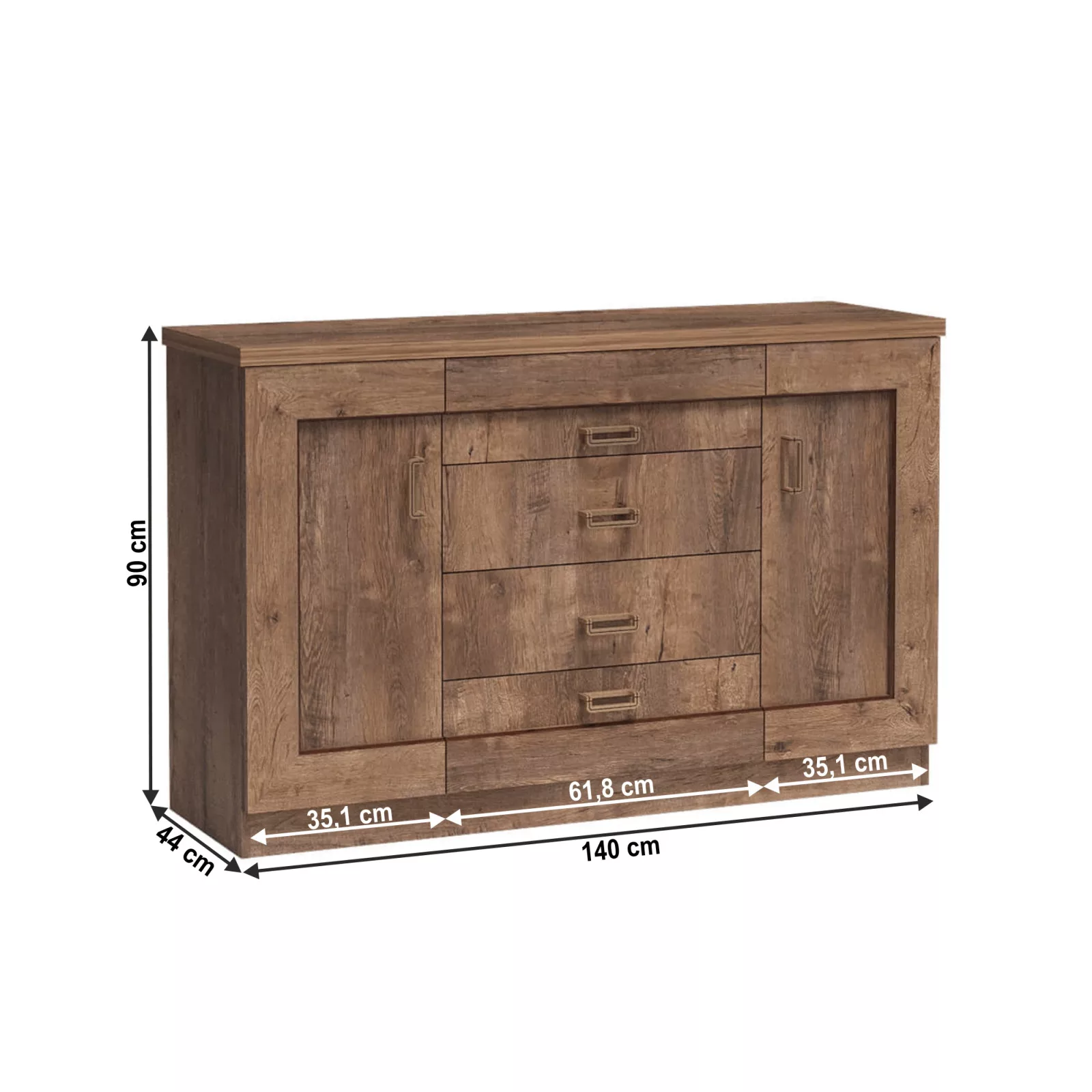 Méretek (SzéxMéxMa): 140x44x90 cm