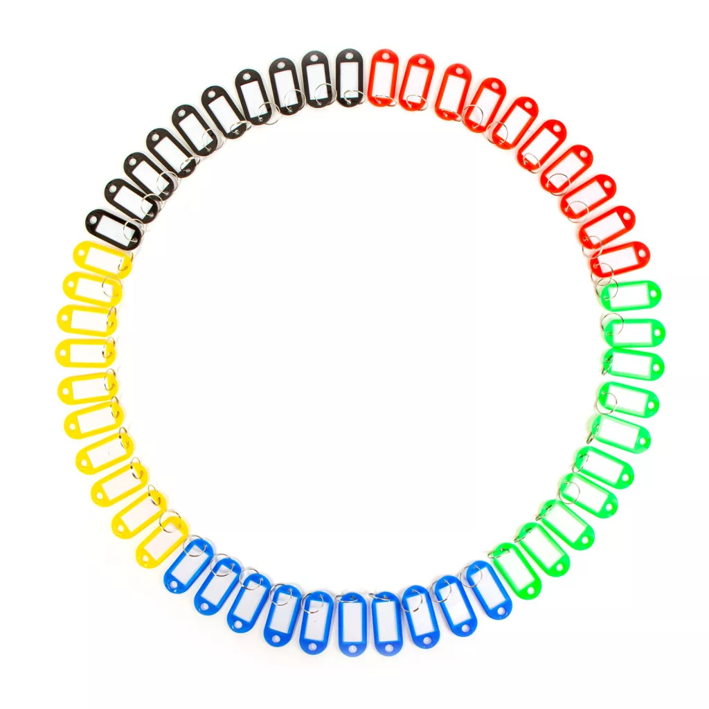 50 db kulcs vagy kulcscsomó azonosítására szolgáló kulcsjelölő szett. A kulcsok könnyen azonosíthatóak és rendszerezhetőek a cimke eltérő színeinek és feliratozhatóságának köszönhetően. Ezek a kulcscimkék nem csak praktikusak, hanem tartós anyaguknak köszönhetően hosszú ideig szolgálnak majd. A könnyen írható felület segítségével gyorsan és egyszerűen azonosíthatja a kulcsokat, így mindig tudni fogja, melyik kulcs melyik ajtót vagy zárat nyitja. Kiváló választás olyan helyekre, ahol sok kulcsot tárolnak egy helyen.