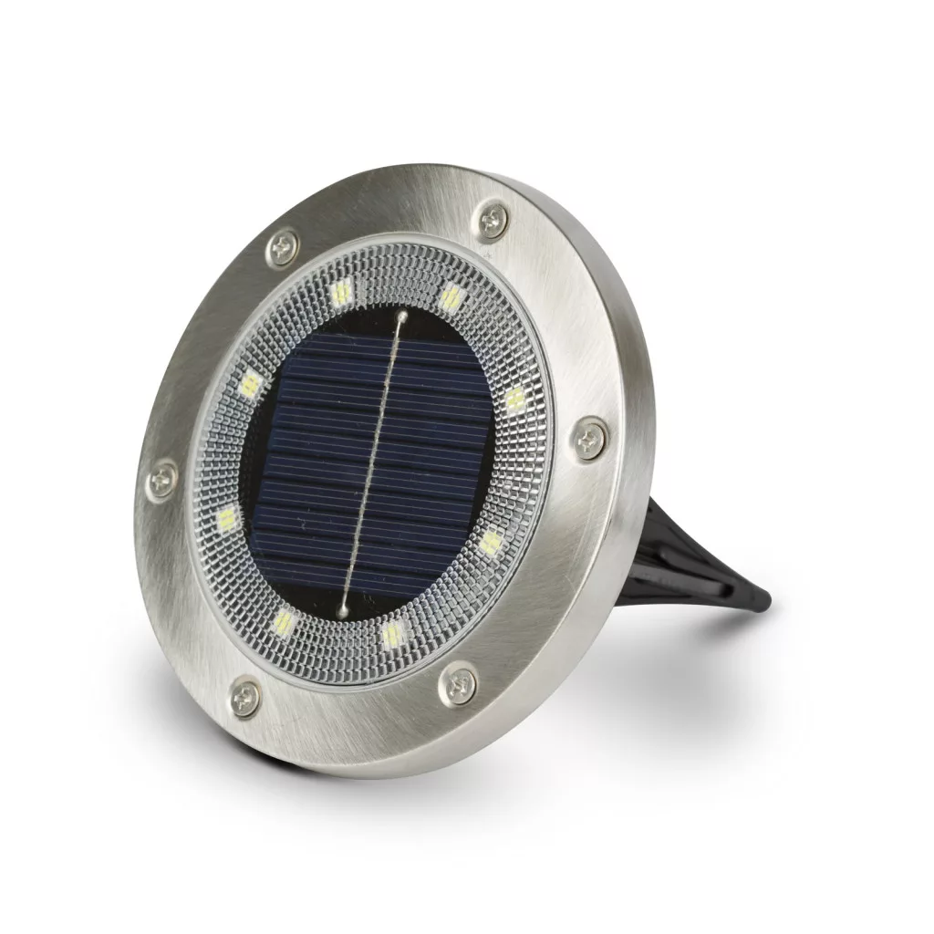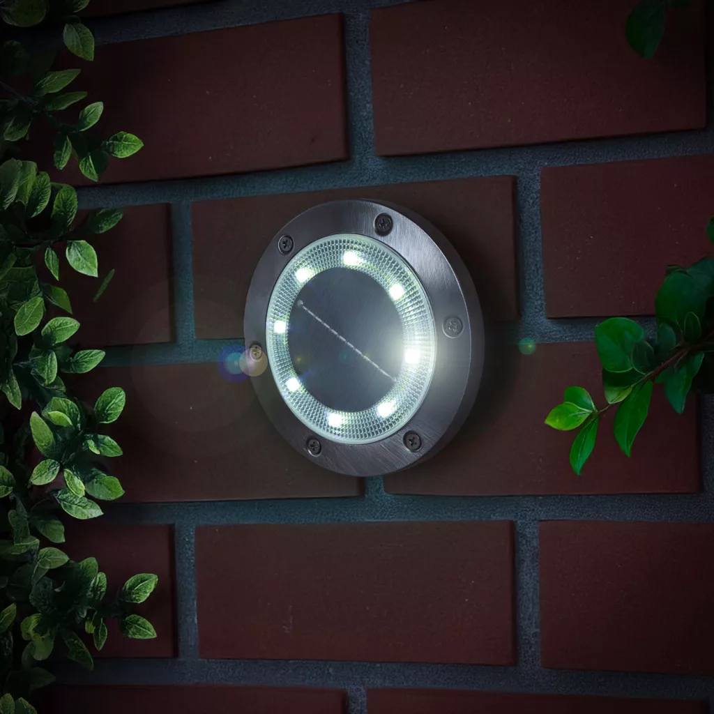 Modern és letisztult megjelenésű, kör alakú LED-es leszúrható, falra szerelhető szolár lámpa, amely kiváló megoldás járdák, kerti ösvények, virágágyások vagy homlokzatok megvilágítására. A hidegfehér fényű, nagy fényerejű LED-ek tiszta, erőteljes fényt biztosítanak, így nemcsak díszítésre, hanem funkcionális világításra is alkalmas. A szolárpanel hatékonyan gyűjti a napenergiát, amit a nagy kapacitású akkumulátor tárol, és akár 6–8 órányi működést is lehetővé tesz teljes feltöltés után. A fém ház strapabíró, időjárásálló kivitelben készült.