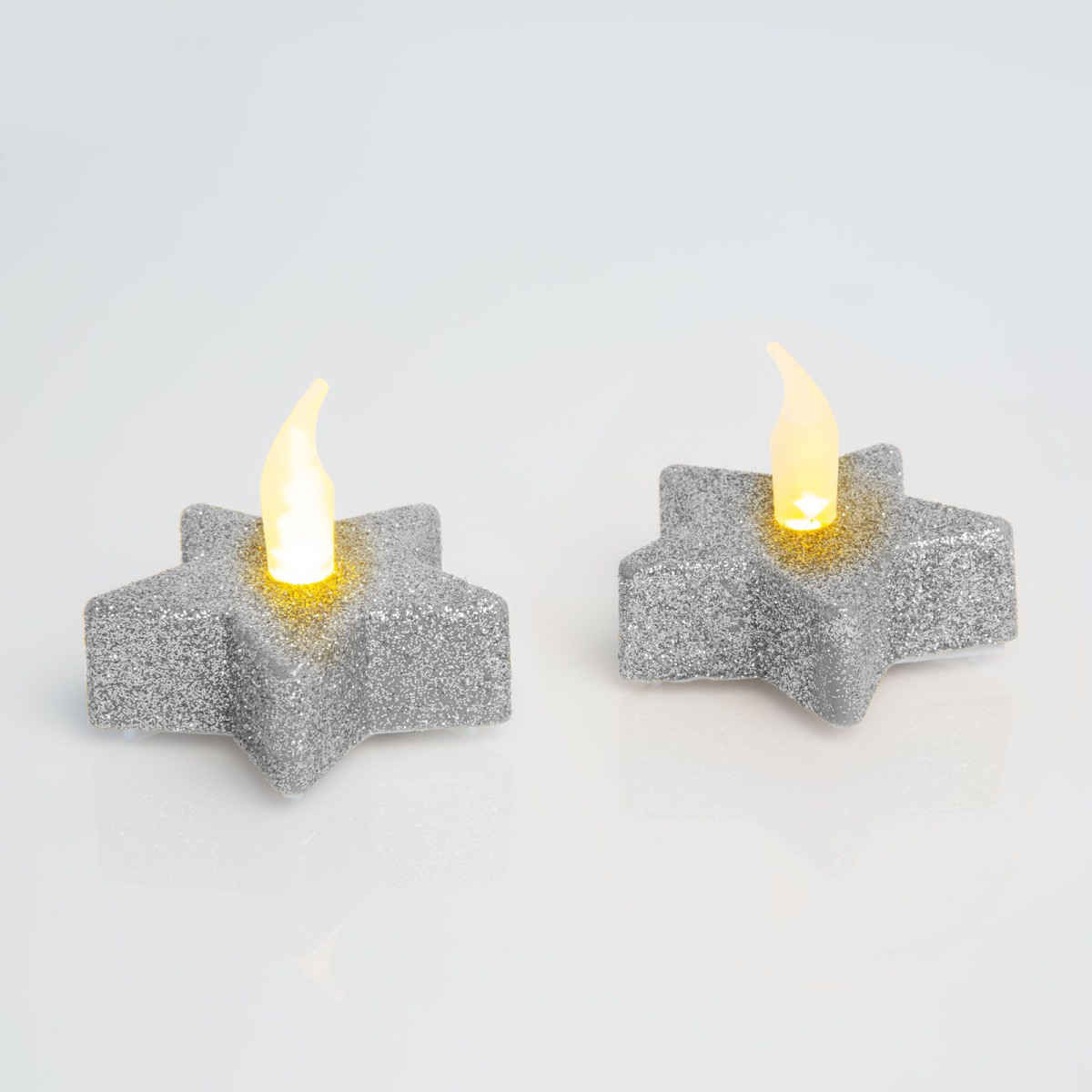 Csillámos, csillag alakú LED-es teamécses, amely nem gyúlékony, nem veszélyes, a szél sem fújja el. A kis mécsesben lévő LED véletlenszerű villódzásával a gyertyaláng hatását kelti. Egyszerűen ki/be kapcsolható az alján található kapcsolóval. 1 db CR2032 típusú gombelemmel működik, amely tartozék.