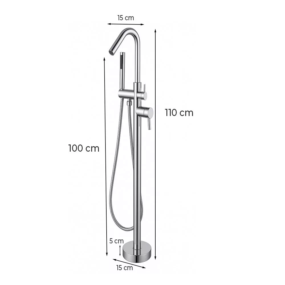 A Lio szabadon álló csaptelep tökéletes kiegészítője minden szabadon álló fürdőkádnak. A 110 cm-es magasság és a 15 cm szélesség ideális vízáramlást biztosít, míg a kb. 100 cm hosszú kézizuhany rugalmas és kényelmes megoldást nyújt hajmosáshoz vagy akár a kád tisztításához.