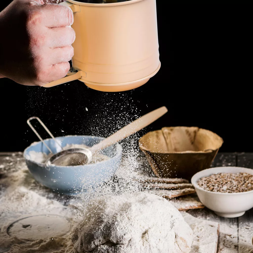 A liszt szita ergonomikusan kialakított rugós nyele kényelmes fogást és könnyű használatot biztosít. A nyelet a szitálás során stabilan tudja tartani.