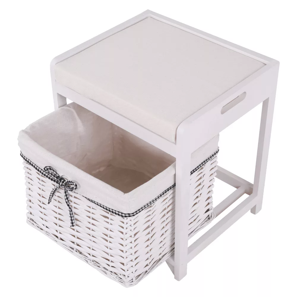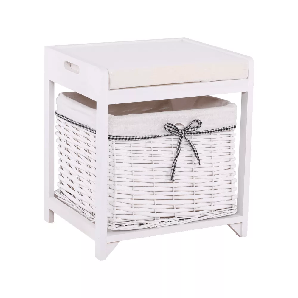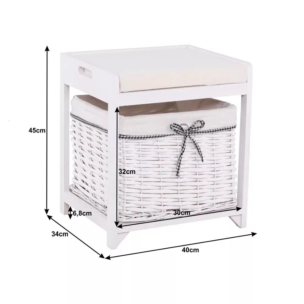 Lóca fonott kosárral és párnával, régi fehér, RUBY1