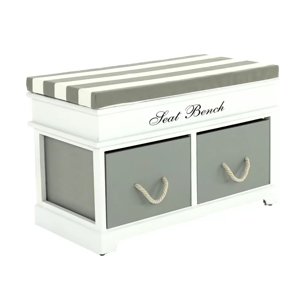 Lóca párnával, 2 fiók, fehér/szürke, SEAT BENCH 2 NEW