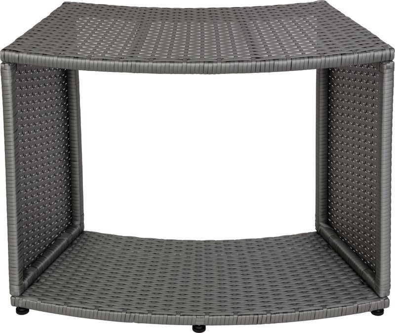 A stílusos rattan megjelenésű, elegáns MSpa® pezsgőfürdő állvány praktikus és esztétikus kiegészítője bármely kerek pezsgőfürdőnek. A nyitott kialakítás könnyű hozzáférést biztosít a tárolt tárgyakhoz, és rengeteg helyet kínál a törölközők, italok vagy más szükséges kiegészítők számára.