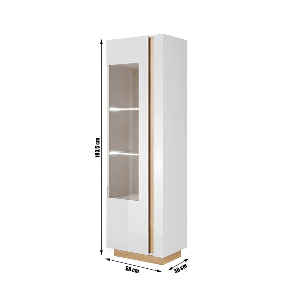 Magas vitrines szekrény 60, fehér/tölgy grandson/magasfényű fehér, CITY