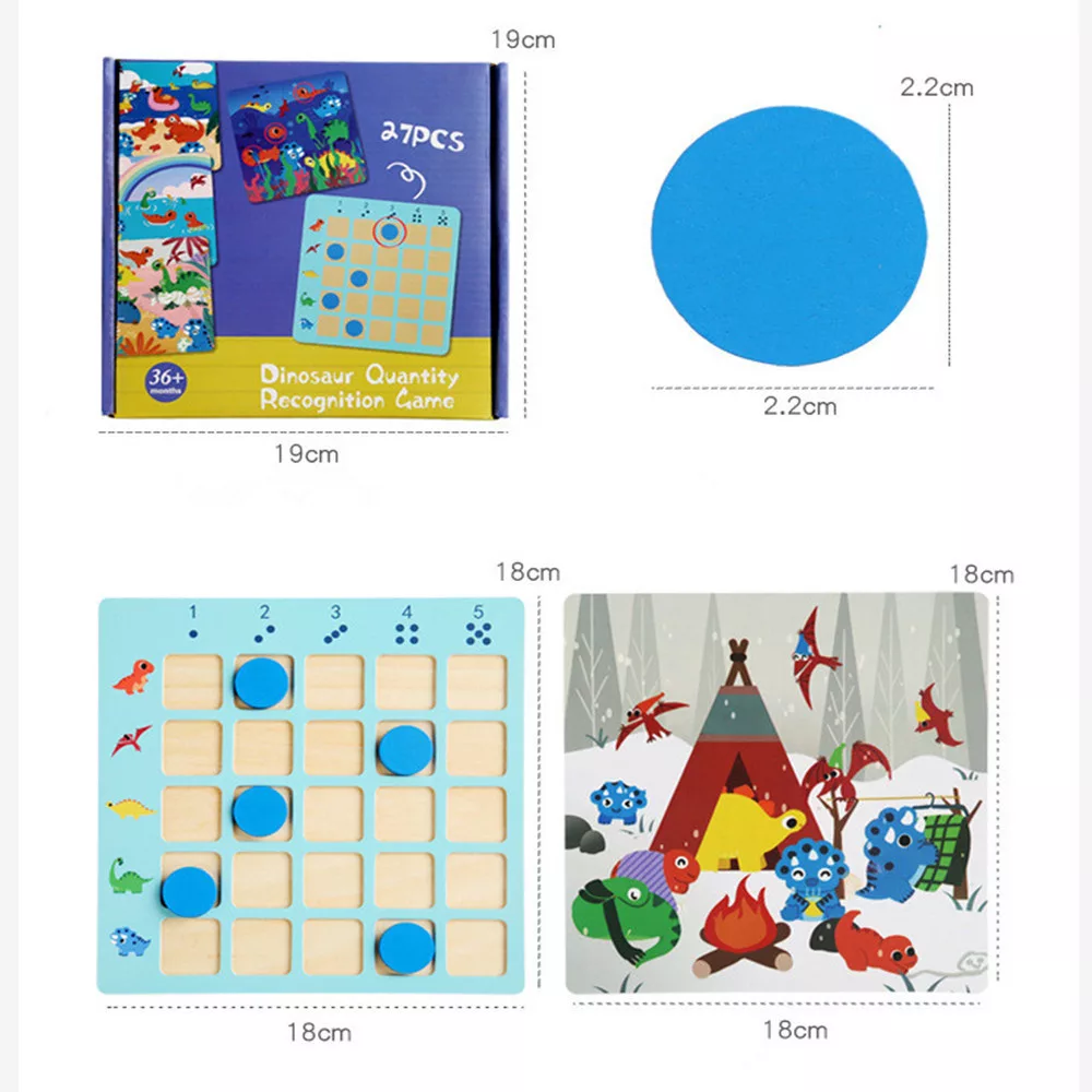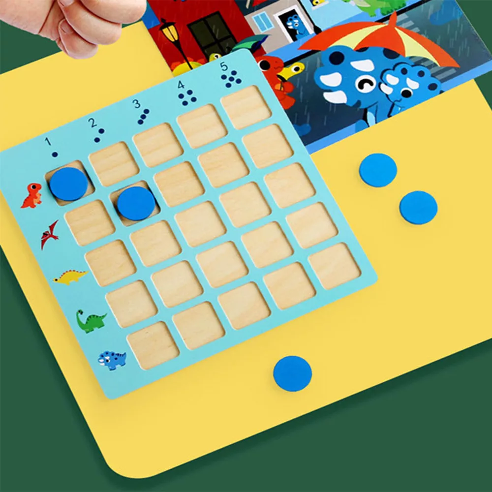 A Dinószámolás egy szórakoztató és oktató játék, amely segíti a gyermekeket matematikai készségeik fejlesztésében, miközben javítja kéz-szem koordinációjukat. A játék során a gyerekek aranyos dinoszauruszok társaságában tanulhatnak meg számolni. A játék fából készült, lekerekített élekkel, így teljesen biztonságos a használata.