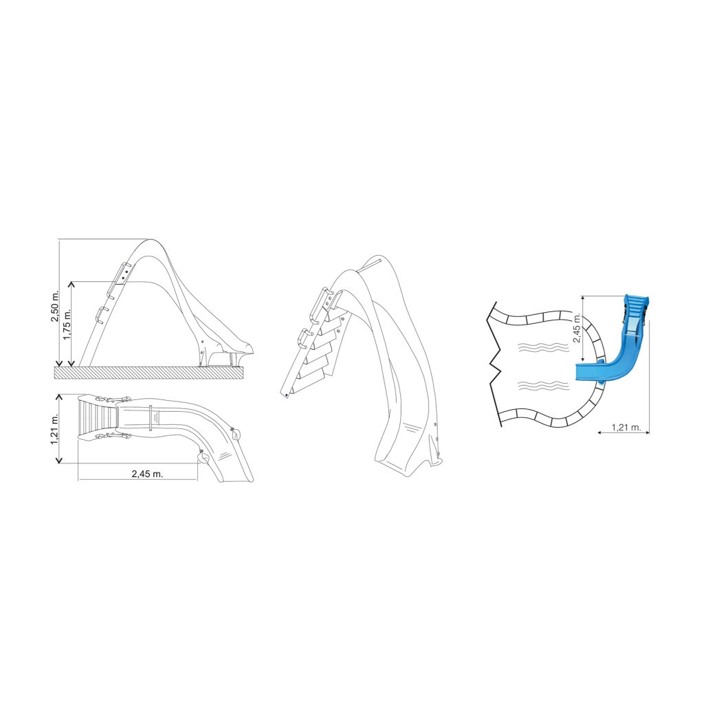 Ez a csúszda kiváló választás, ha biztonságos és élvezetes medencekiegészítőt keresel. A csúszásmentes lépcsők és az erős kapaszkodók stabil használatot biztosítanak, miközben a vízköpős rendszer javítja a csúszási élményt. Időtálló kialakítása ellenáll az UV-sugárzásnak és az időjárás hatásainak.