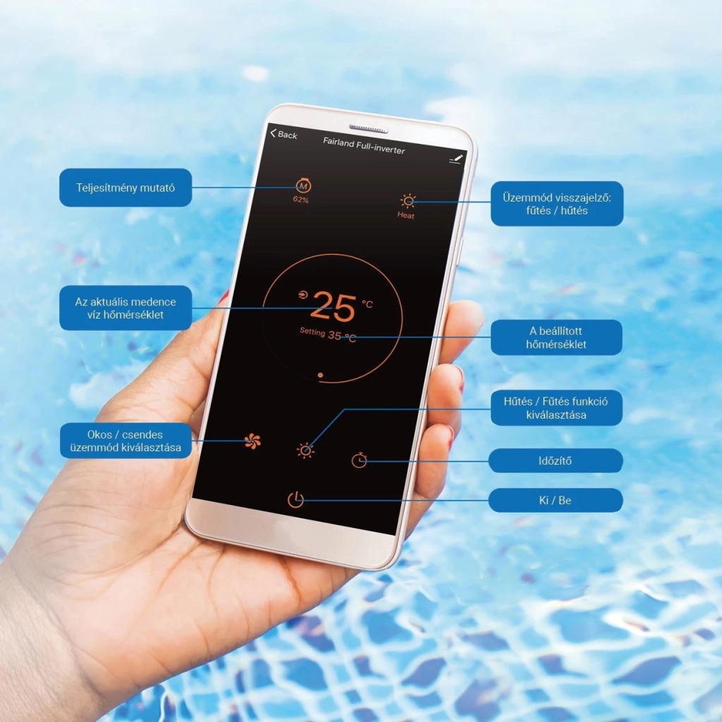 A Fairland InverX20 18C a nagyobb teljesítményt és az intelligens vezérlést ötvözi, így ideális választás közepes és nagyobb medencékhez. A 3D spirális titán hőcserélő gyorsabb és hatékonyabb hőátadást biztosít, míg az inverter technológia jelentősen csökkenti az energiafogyasztást. A -20°C-tól 43°C-ig terjedő működési tartomány hosszabb szezont és megbízható működést garantál.
