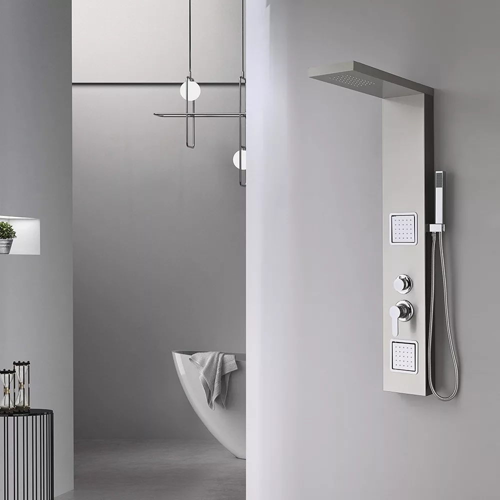 A Merino hidromasszázs zuhanypanel egyedülállóan elegáns, funkcionalitásban és stílusban is gazdag kiegészítője lesz a fürdőszobának. A rozsdamentes acélból készült tartós kivitel, a különleges vízfunkciók és a könnyen kezelhető csaptelep és fogantyúk együttesen teszik ezt a zuhanypanelt az ideális választássá a mindennapi fürdőzés luxusát keresők számára. Kényeztesse magát egy igazi wellness élménnyel a Merino hidromasszázs zuhanypanel segítségével!