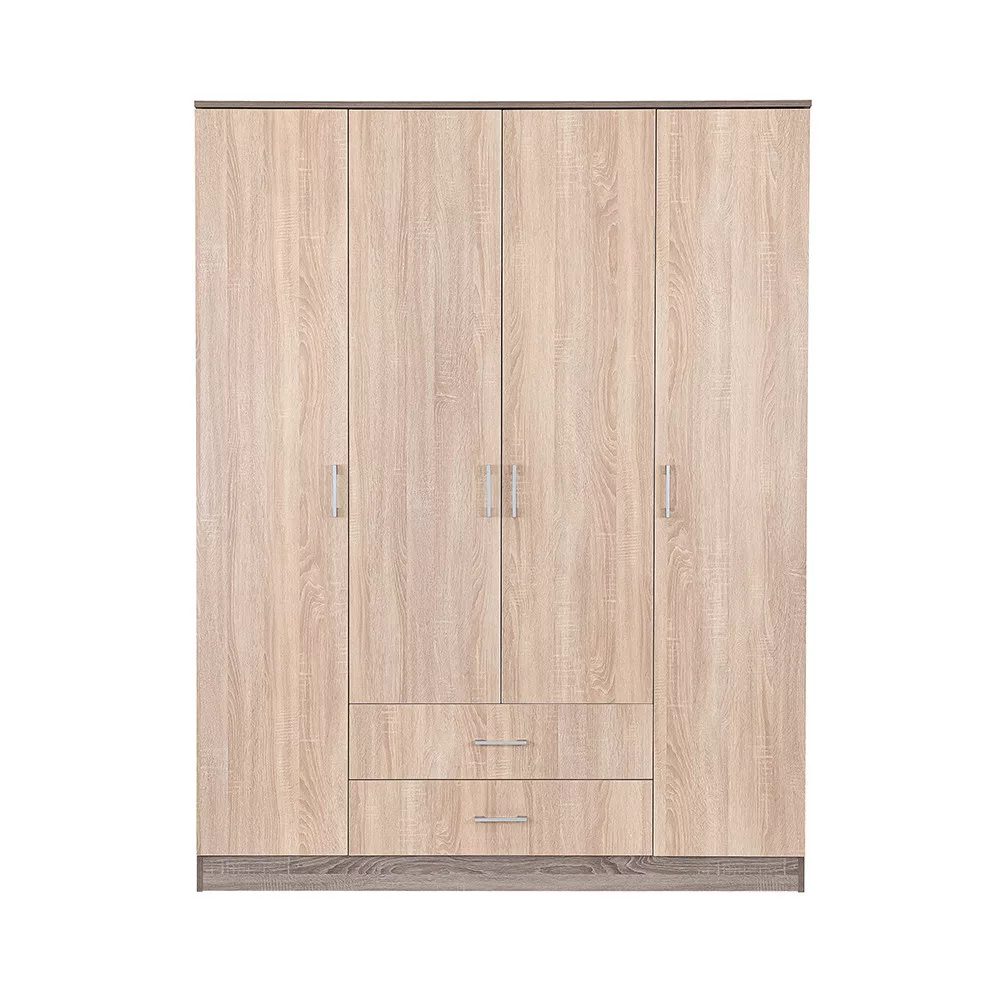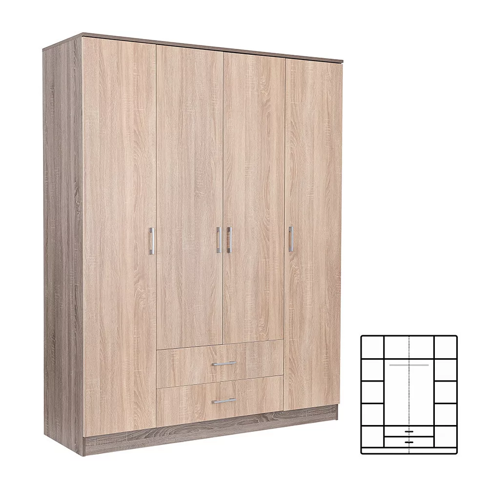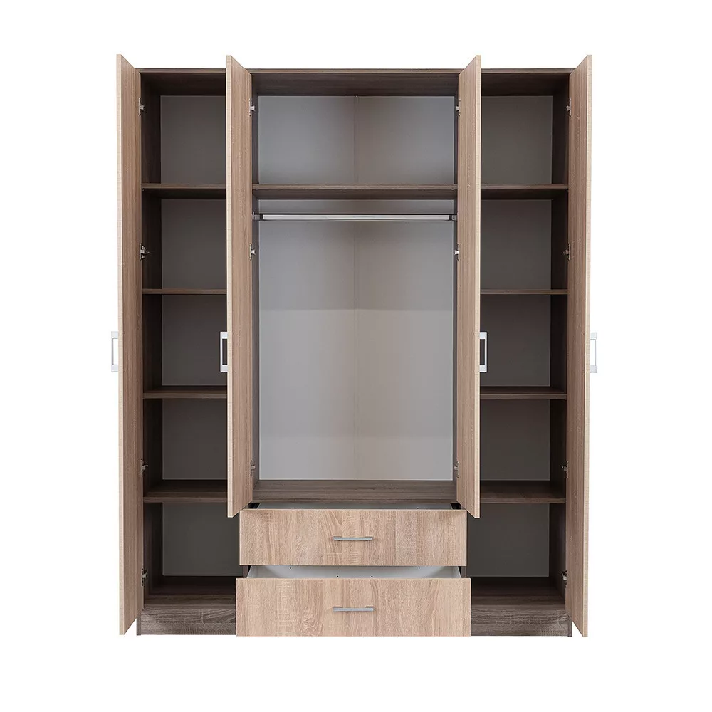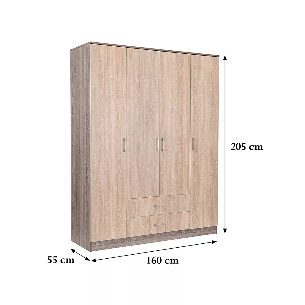 Az elegáns sonoma tölgy front és a fahatású yorki tölgy korpusz ötvözete tökéletes harmóniát teremt a nappaliba vagy a hálószobába egyaránt. A 205 cm magas, 160 cm széles és 55 cm mély gardróbszekrény ideális választás mindenki számára, aki szeretné rendszerezni ruháit és kiegészítőit.