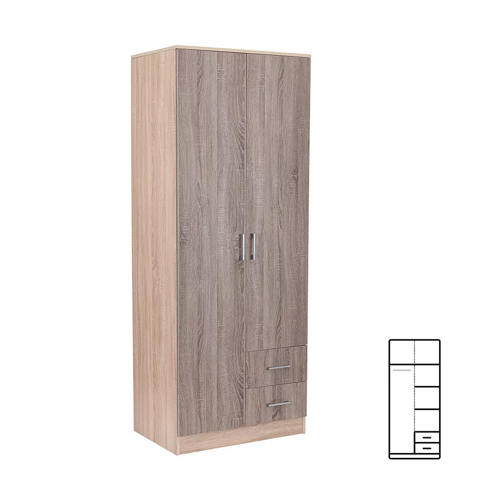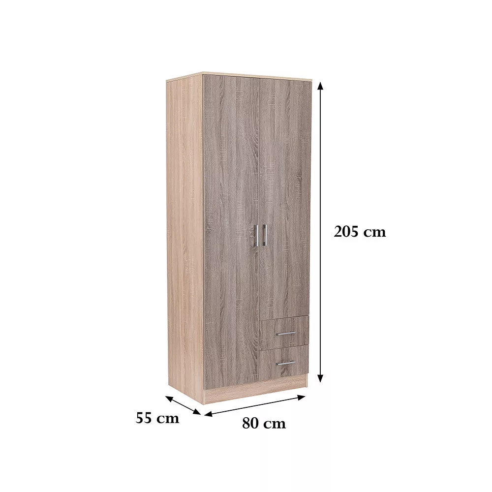 Az elegáns yorki tölgy front és a fahatású sonoma tölgy korpusz ötvözete tökéletes harmóniát teremt a nappaliba vagy a hálószobába egyaránt. A 205 cm magas, 80 cm széles és 55 cm mély gardróbszekrény ideális választás mindenki számára, aki szeretné rendszerezni ruháit és kiegészítőit.