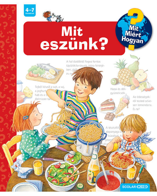 A Ravensburger népszerű Mit? Miért? Hogyan? gyermekkönyvsorozata 31. kötetének segítségével az óvodások és a kisiskolások mindennapi életünk fontos részével, a helyes és egészséges táplálkozással, a különböző élelmiszerek jótékony, illetve egészségkárosító hatásával, valamint előállításuk érdekességeivel ismerkedhetnek meg. „Mi történik szervezetünkben az ennivalóval? Mi az az ételpiramis? Honnan származik a banán? Hogyan nő a rizs és a kukorica? Mi mindent lehet gabonából készíteni? Mit ettek régen az emberek?” – a kötetet lapozgatva mindezekre választ kaphatnak a mindenre kíváncsi gyerkőcök. Az ötletes könyv szórakoztatva vezeti be a gyerekeket (és szüleiket is!) az egészséges életmód alapjaiba – mert az egészségre nevelést korán kell kezdeni! A már hazánkban is közkedvelt Ravensburger-játékok közé tartozó képes szakkönyvsorozat kedves illusztrációkkal, a gyerekek életkorának megfelelő információkkal ad választ a rengeteg kérdésre. Minden egyes oldal új témakört jár körül, melyek részletgazdagságában a felnőttek segíthetnek eligazodni, akár egy-egy óvodai vagy kisiskolás foglalkozás keretében. A sorozat nyomdai kivitelezése egyedülállóan magas színvonalő. Fő különlegessége, hogy minden könyv közel 50 titkos ablakot rejt, melyek fedelét felnyitva a gyerekek kielégíthetik kíváncsiságukat.
