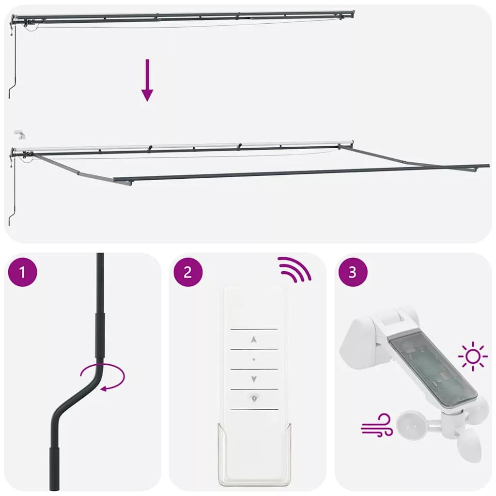 Veszély! Kinyitáskor a rugó erősen kipattan. NE távolítsa el a kötelet addig, amíg az összes összeszerelési lépést be nem fejezte, az összes csavart nem rögzítette és az elem nincs a falhoz rögzítve! Figyelem! Legyen óvatos a karok kilazításakor, mert azok feszültség alatt állnak! Az összecsukható kar hirtelen kiengedése sérülést okozhat. Figyelmeztetés: A termék használata előtt el kell olvasni a használati útmutatót. Figyelem: A fagyos körülmények között történő használat kárt tehet a termékben. Külső felhasználás épületeknél és egyéb építkezéseknél. Ne engedje, hogy a gyerekek a redőny vezérlőeszközével játszanak. Tartsa a távirányítót távol a gyermekektől.