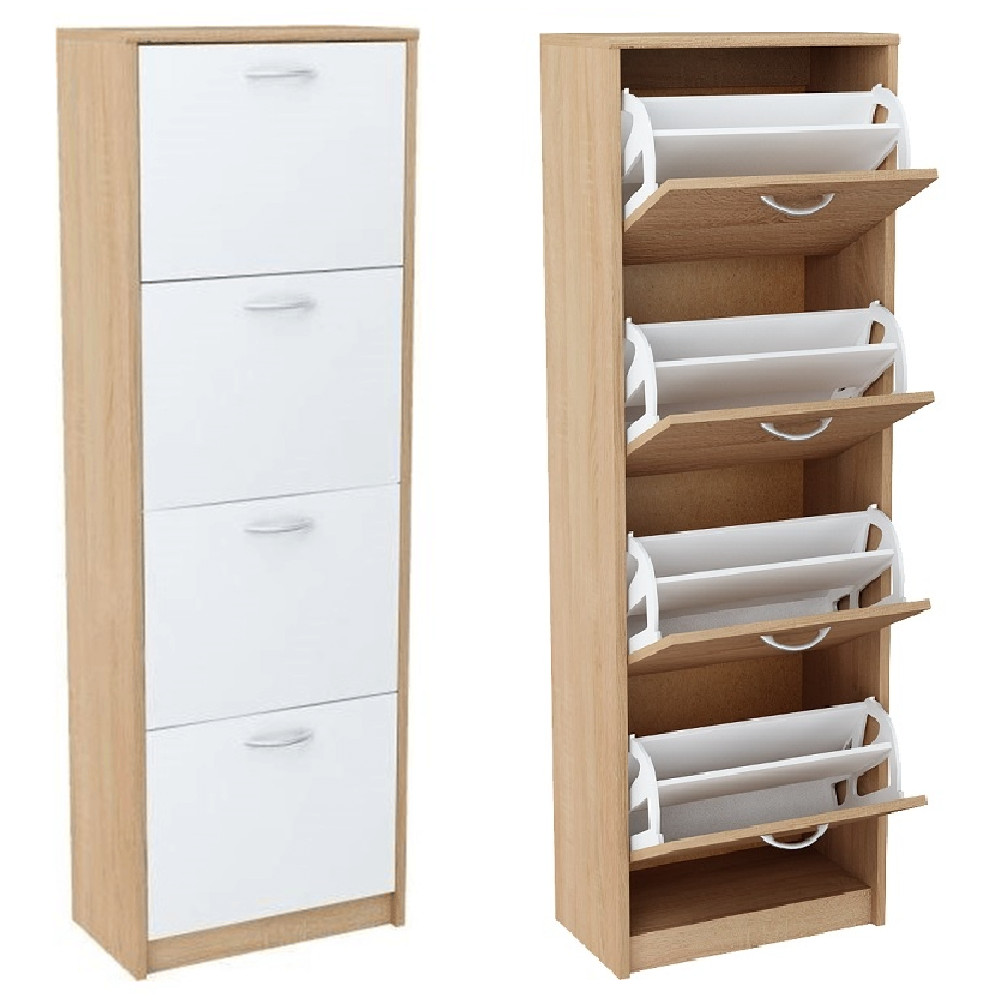 Négyrészes cipősszekrény, tölgy sonoma/fehér, VIVAT NEW TYP 3