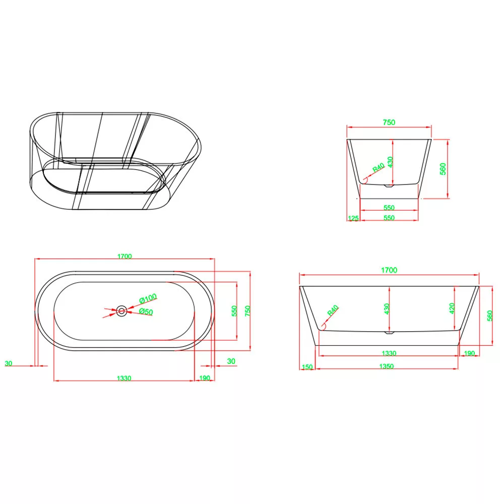 - Anyag: Prémium minőségű szaniter akril – tartós és könnyen tisztítható