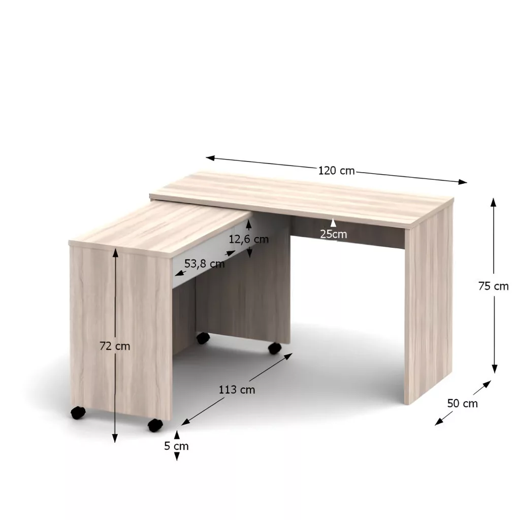 Nyitható PC asztal fiókokkal, tölgy sonoma/fehér, VERSAL NEW