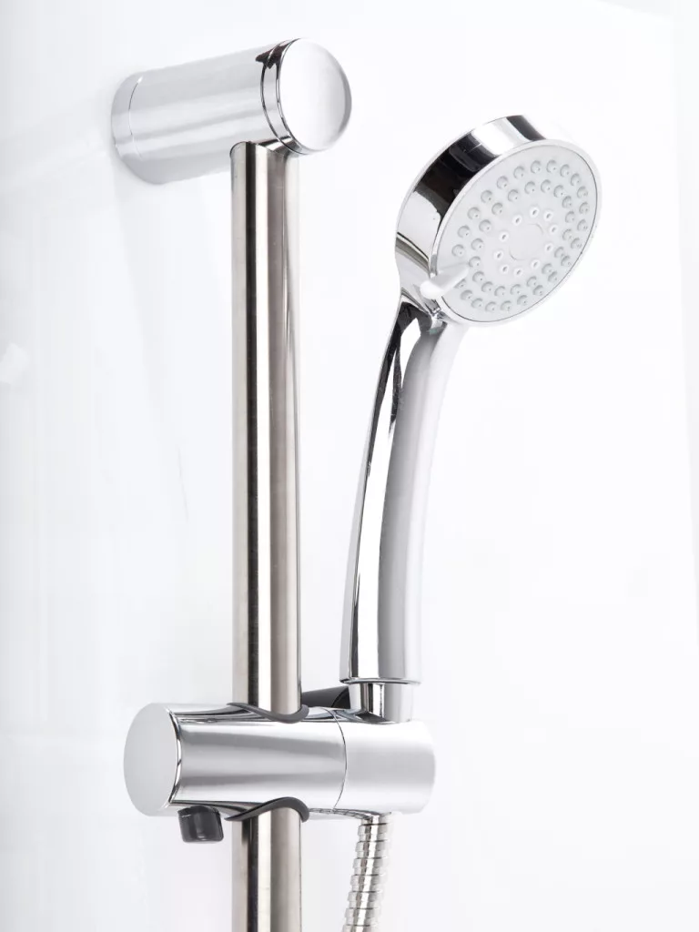 - Zuhanyfej: 3 vízsugár-mód (eső, lágy permet, vegyes) • csúszásmentes markolat