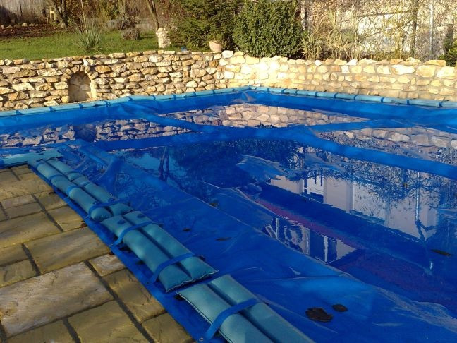 -Gondoskodjon a medence letakarásáról megfelelő minőségű téli takarófóliával, melyet vízzsákkal célszerű rögzíteni.