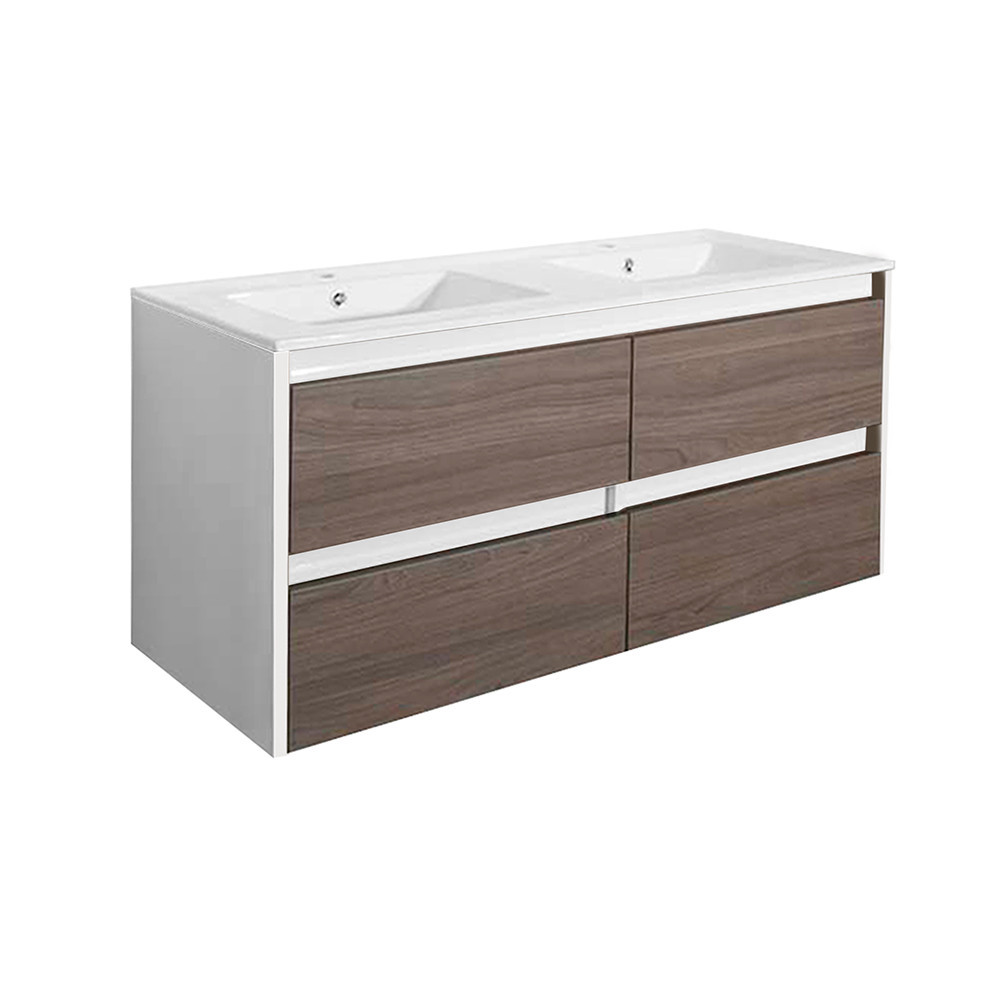 A csomag része a bútorra tökéletesen illeszkedő, fehér színű, dupla medencés kerámia mosdó is, amely két csaptelep számára kialakított hellyel rendelkezik. így nem kell külön keresni a hozzáillő mosdót. A csomag nem tartalmazza a csaptelepeket és a leeresztőt!