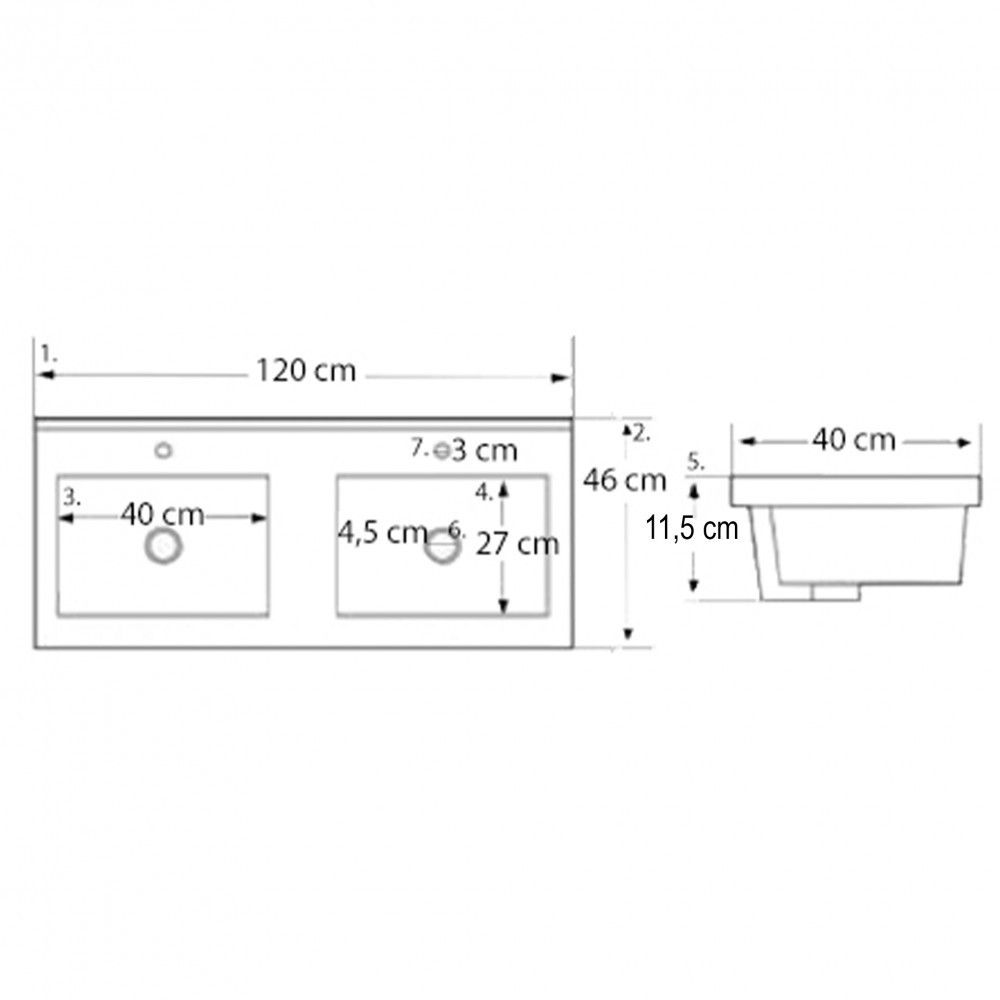 A csomag részét képzi egy méretben passzoló kerámia mosdó is, így ezt nemkell külön beszereznie. A mosdó elkészítésekor kiváló minőségű kerámiát alkalmaztak, ezzel garantálva az időtállóságot. A mélymedencékkel ellátott dupla medencés mosdóban két csaptelepnek van kialakított hely. Ebből adódóan nagyobb családok számára is ideális választás hiszen így nem kell sorban állni egy-egy kézmosás alkalmakor.