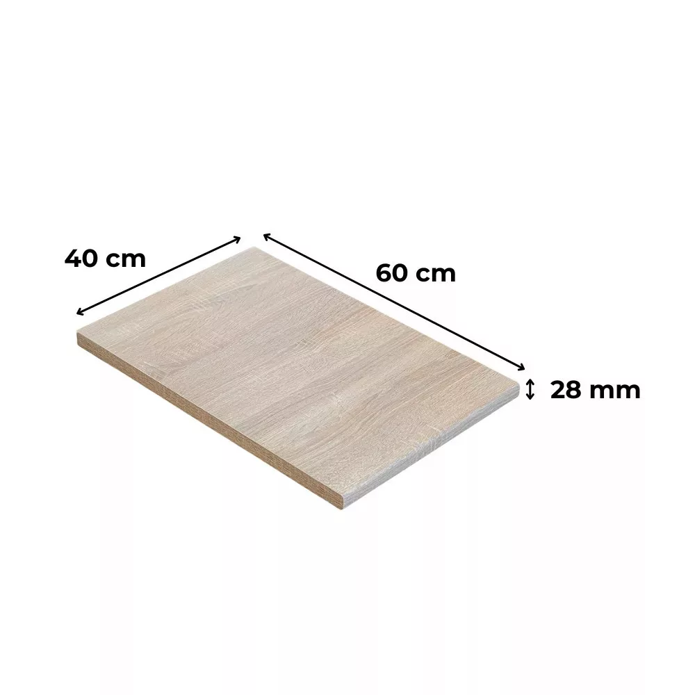 A munkalap 60 × 40 cm méretű, 28 mm vastag, ami stabil és megbízható munkafelületet nyújt a mindennapi konyhai használat során. A laminált felület strapabíró, könnyen tisztítható, a színazonos dekor élzárás pedig esztétikus megjelenést és hosszabb élettartamot biztosít.