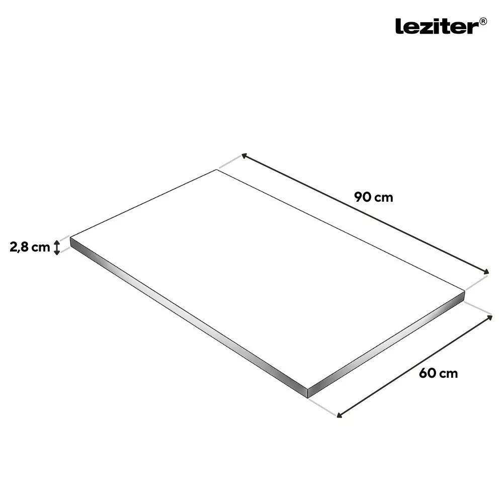 A munkalap 90 × 60 cm méretű, 28 mm vastag, ami stabil és megbízható munkafelületet nyújt a mindennapi konyhai használat során. A laminált felület strapabíró, könnyen tisztítható, a színazonos dekor élzárás pedig esztétikus megjelenést és hosszabb élettartamot biztosít.