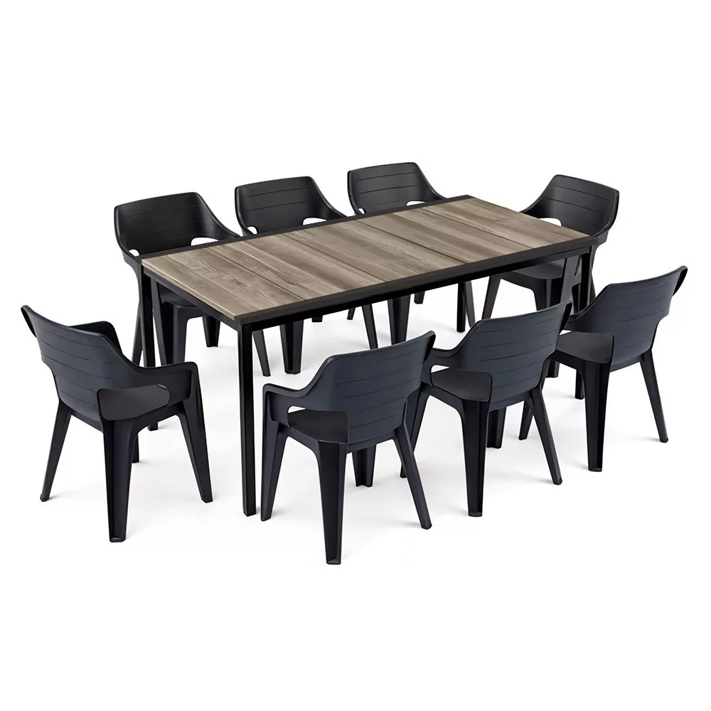 Keter Ravello Large 8 + 1 kerti garnitúra – kőris asztallap - fekete rakásolható székek