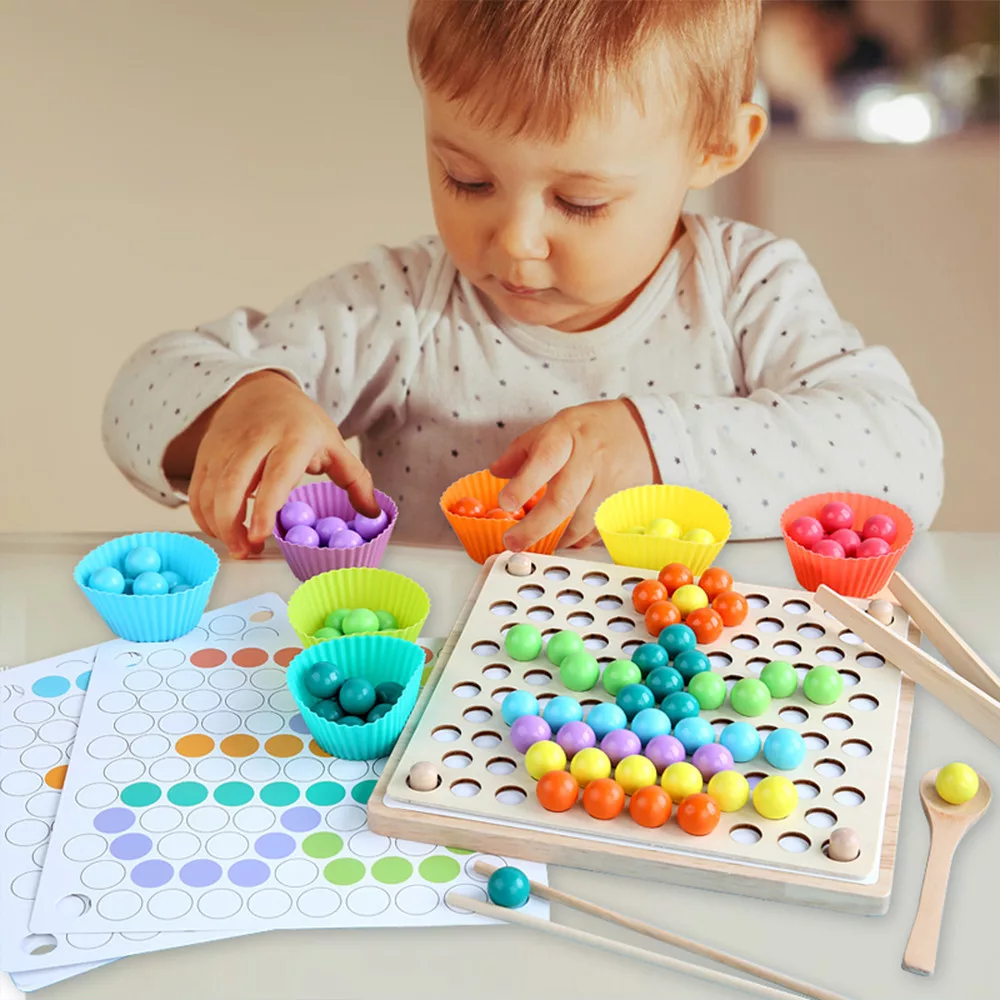 A kerek színes gyöngyök segítenek a kisgyermekeknek a színek és formák felismerésében. Az élénk színek sokfélesége fejleszti a gyermekek színérzékelését. A játék koordinálja a gyerekek kezét, szemüket és fejüket, elősegítve a szem-kéz koordinációt, ami kiváló tanulási játék az óvodás korú gyermekek számára.