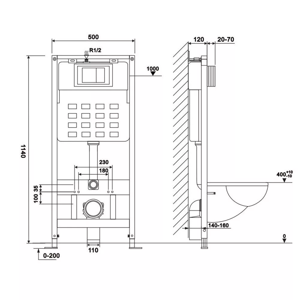 A Roya falba építhető WC tartály kiemelkedő minőségű anyagból, HDPE-ből készül, ami ellenáll a kopásnak és a korróziónak. A tartály teljes térfogata 6-9 liter, így hatékonyan használja a vizet és csökkenti a vízfogyasztást. Ez a WC tartály tökéletesen illeszkedik a fali WC-khez és tömör falakhoz, így könnyen beépíthető és stabilan tartja a WC-t. A méretei is ideálisak, 500 x 120 x 1140 mm. A roya wc csésze méretei: 350 x 400 x 540 mm.