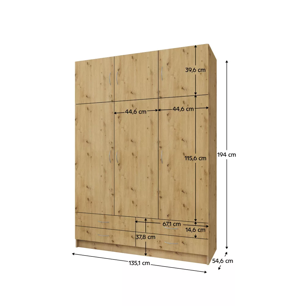 Méretek (SzxMéxMa): 135,1x54,6x194 cm