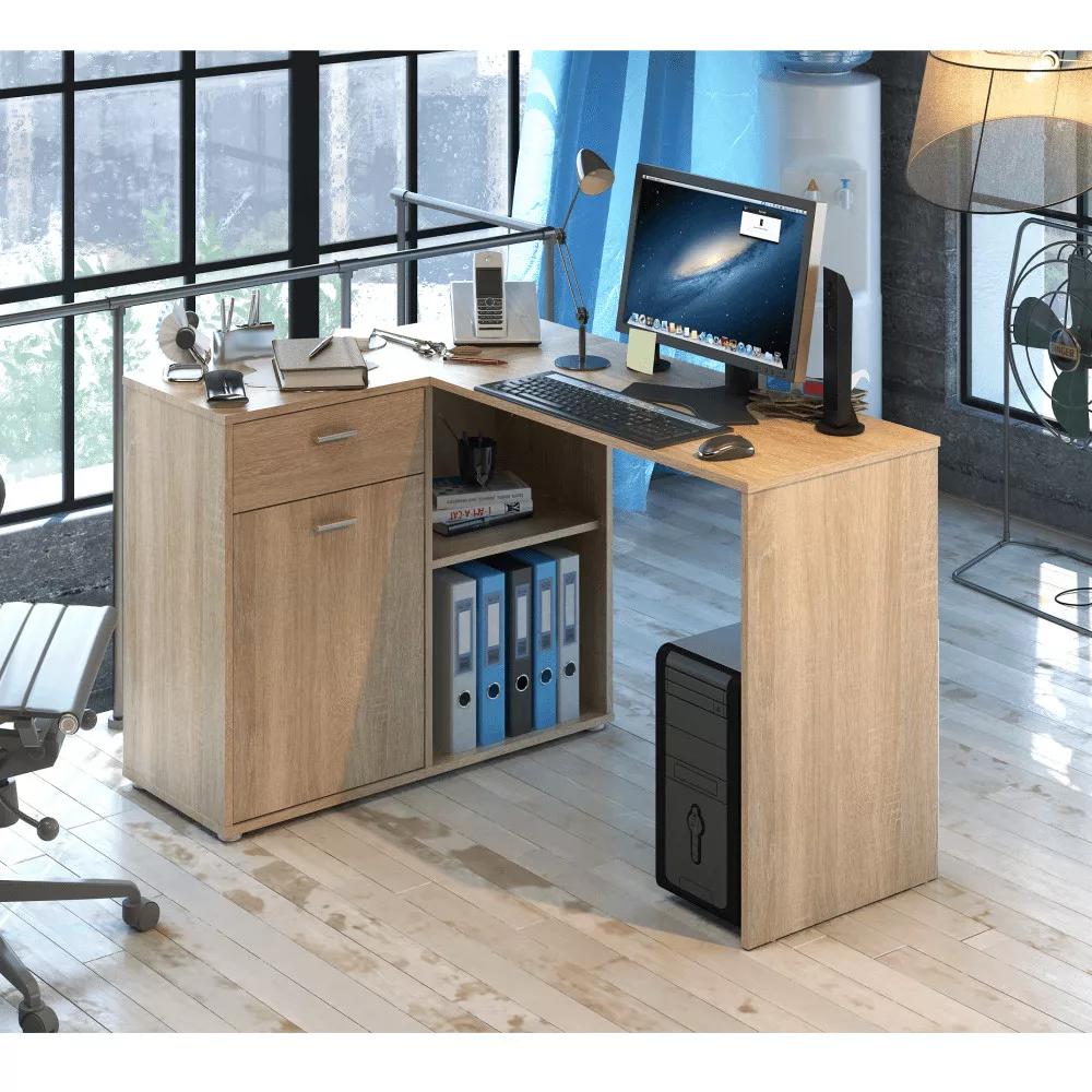 Sarok PC asztal, tölgy sonoma, KALIMERO