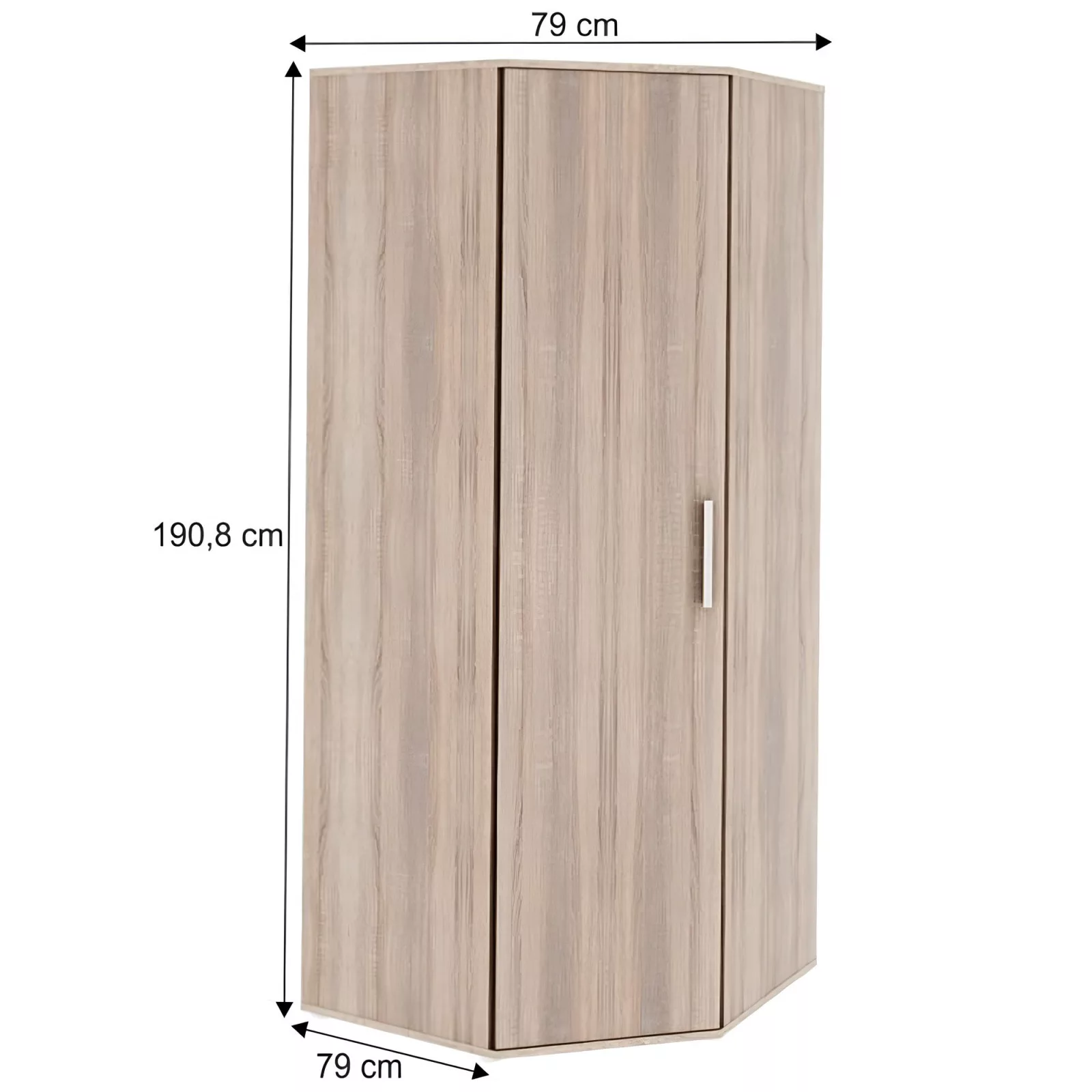 Sarokszekrény mérete (SzéxMaxH): 79x190,8x79 cm.