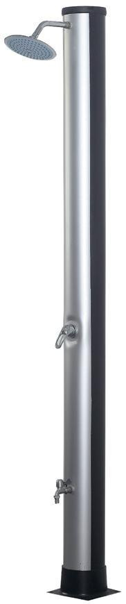 A kerti napelemes zuhany egy darabból áll, melynek PP burkolata egyben melegvíz-tároló tároló és napkollektor is. A vízellátó szerelvények a test belsejében találhatók. A vezérlokar, a zuhanyfej és a zuhanyfejtartó a zuhanytesten kívül találhatók. Az alsó részen talp található, amely a zuhany rögzítésére szolgál. A tölto csatlakozó a hátsó alsó részben található. Teljesen normális, ha a karos csaptelep lezárása után néhány másodpercig víz folyik ki a zuhanyfejbol.A kerti napelemes zuhanyzót magánépületekben való használatra tervezték, például a kertben, kerti medencék vagy teniszpályák tartozékaként. Személyek egyéni zuhanyozására szolgál. Nem nyilvános vagy kereskedelmi használatra készült. A zuhany egy külön csappal van felszerelve a kényelmes lábmosáshoz.Méretek:csoátméro - 16 cmalap mérete - 20 x 20 cmmagasság - 2,05 mtartály térfogata - 38 lAnyag: cso - PVCalap - ALU.
