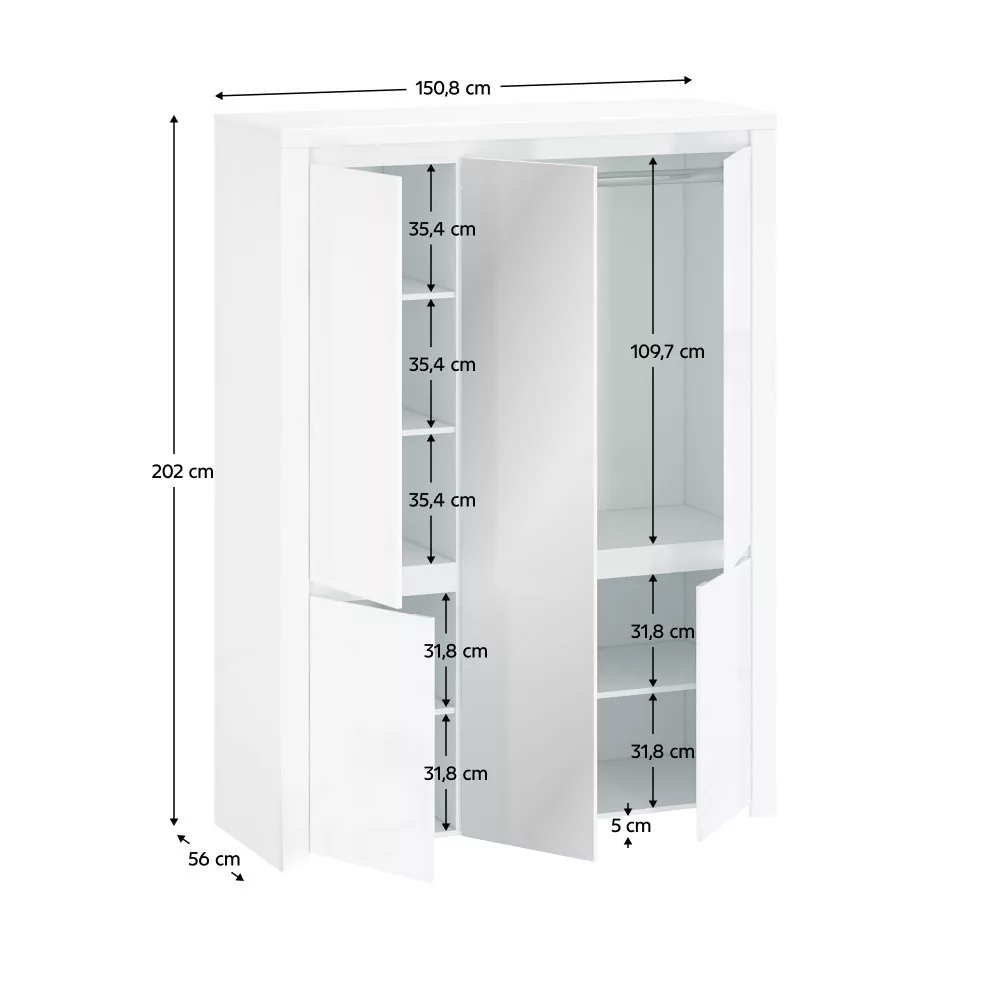Méretek (SzxMéxMa): 150,8x56x202 cm