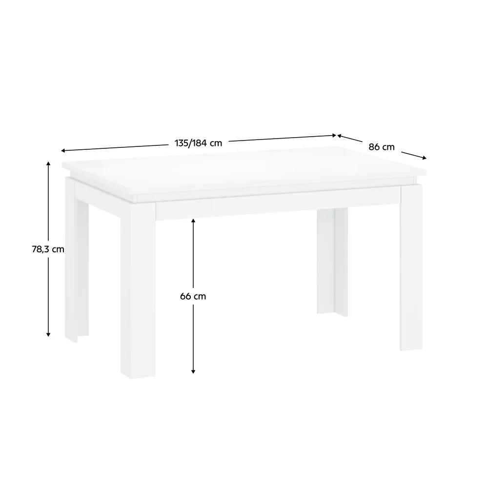 Széthúzható asztal, fehér, 135-184x86 cm, LINDY