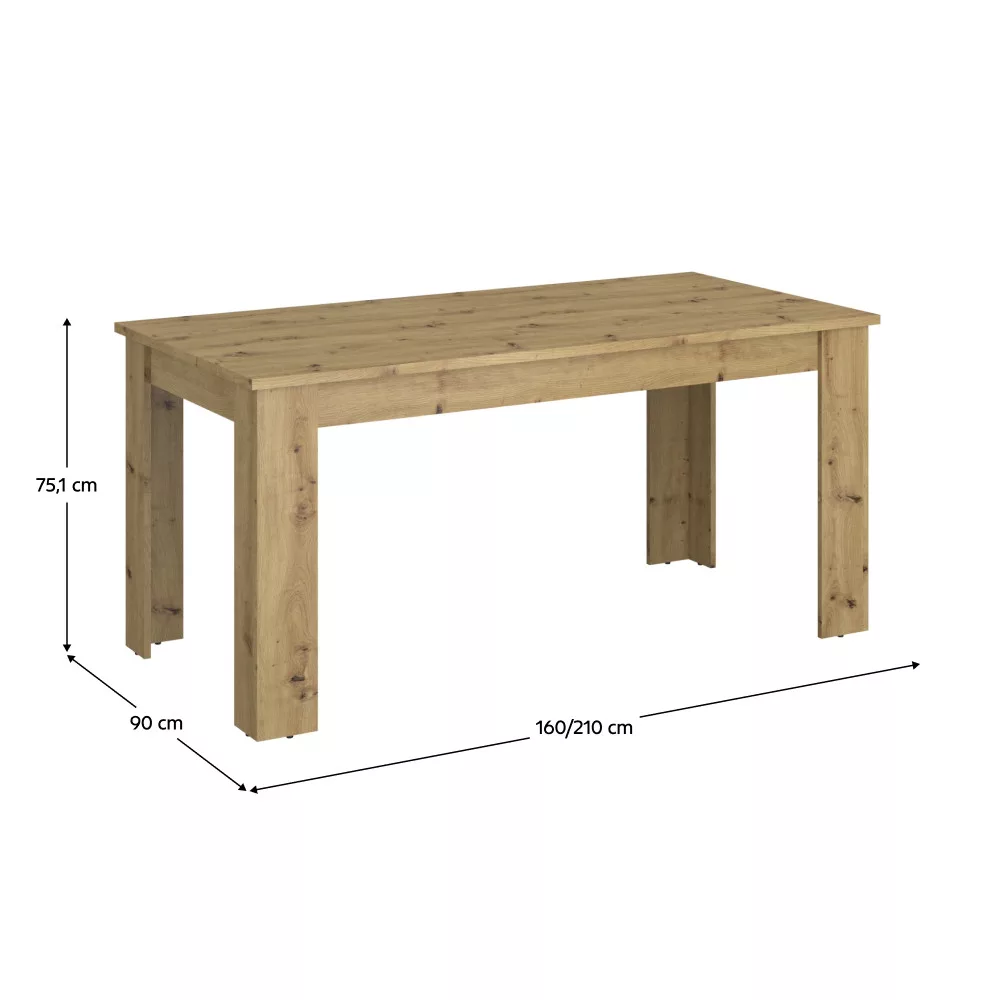 Széthúzható étkezőasztal, artisan tölgy, 160-210x90 cm, AIRON
