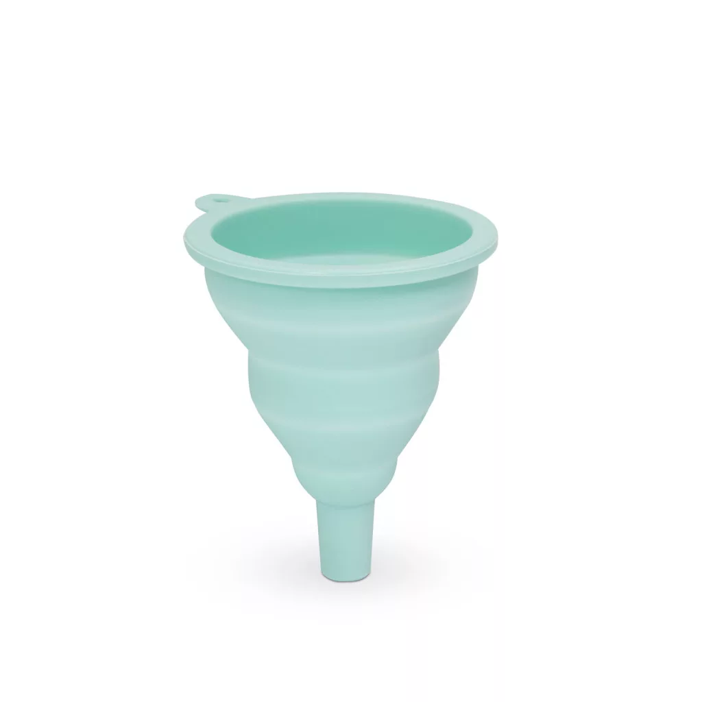 Háztartásban használatos szilikon tölcsér, amely összenyomható, így használaton kívül kevés helyet foglal. Nem benzinálló!