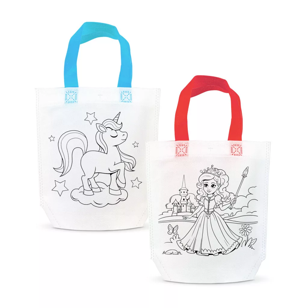 Színezd magad szatyor színes filctoll készlettel. Kettő az egyben: táska és foglalkoztató gyerekeknek. Színezéskor a táska két anyaga közé vastagabb papírt kell tenni, hogy a hátoldalra ne kerüljön festék.