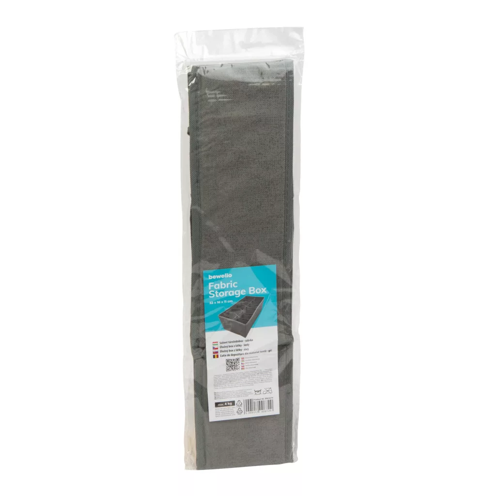 A szövet tárolódoboz tökéletes választás lehet ruhák, játékok vagy bármely más tárgy rendezett tárolásához. A használaton kívüli, kis helyen történő tárolást biztosítja az alján elhelyezett cipzár, amelyet kinyitva összezárható a doboz.
