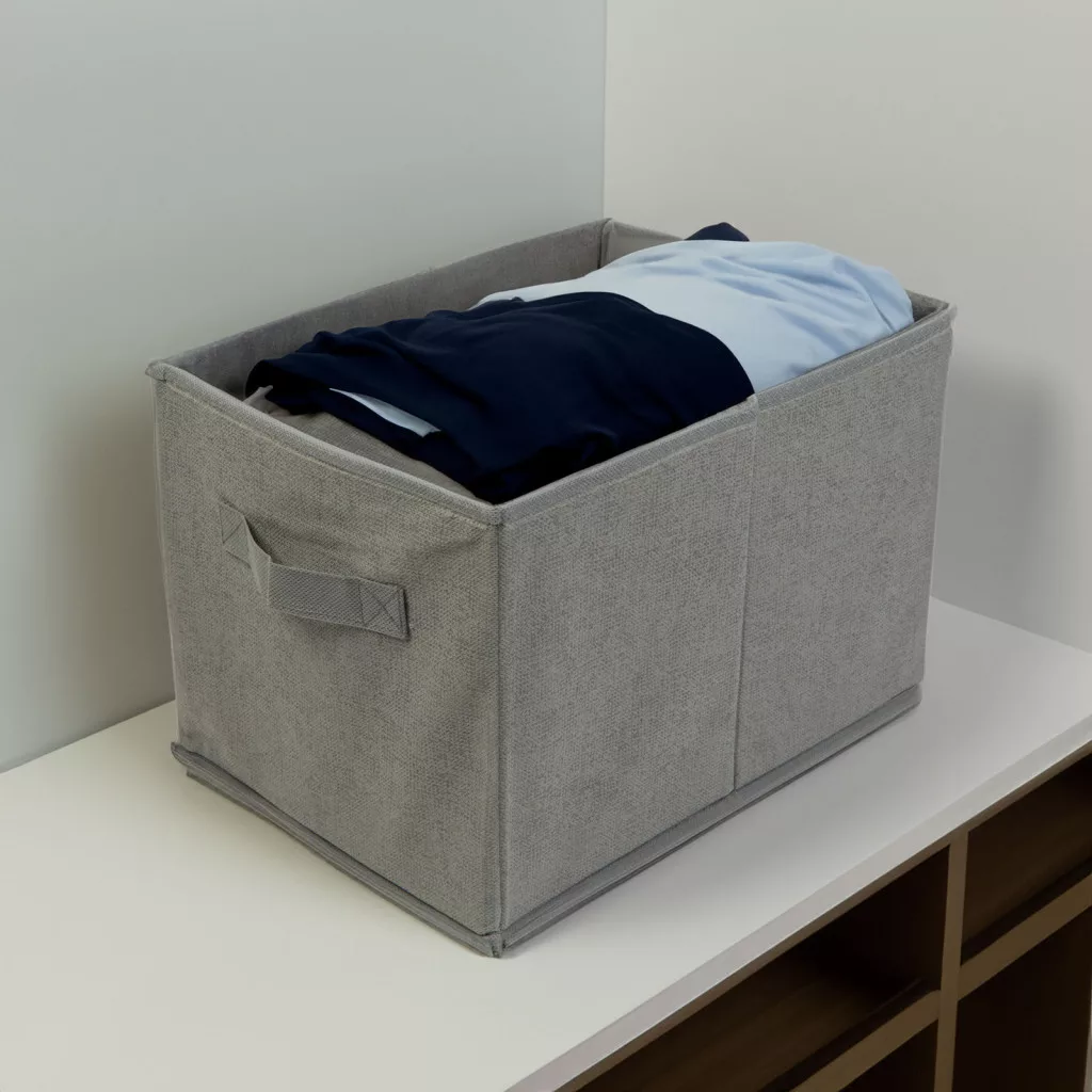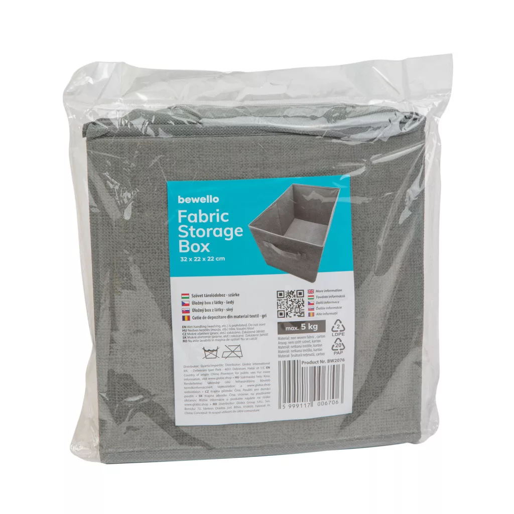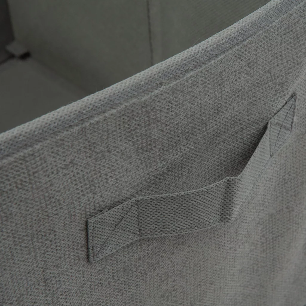 A szövet tárolódoboz tökéletes választás lehet ruhák, cipők, játékok, könyvek vagy bármely más tárgy rendezett tárolásához. A használaton kívüli, kis helyen történő tárolást biztosítja, hogy kivehető az alja, mely után könnyen összezárható és tárolható.
