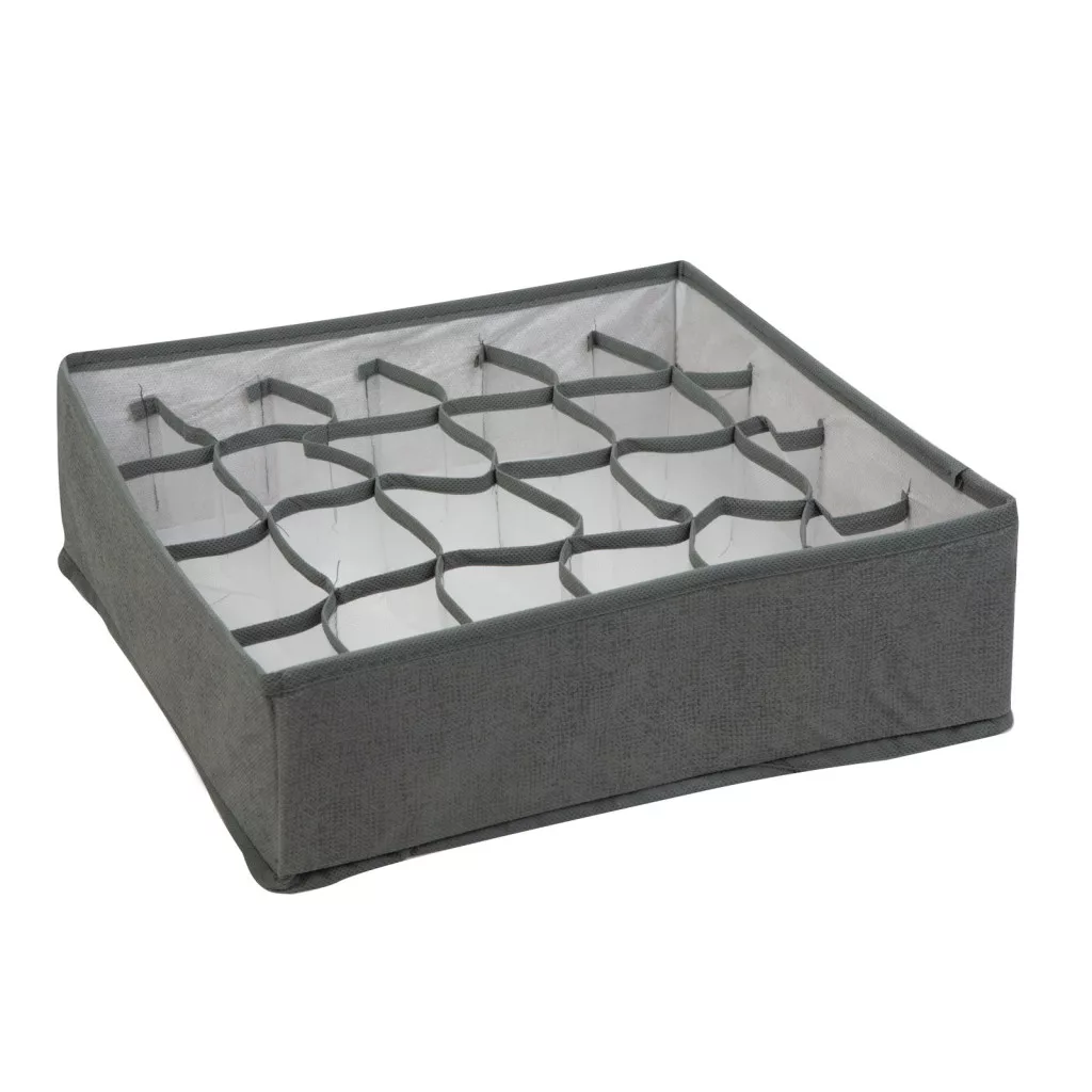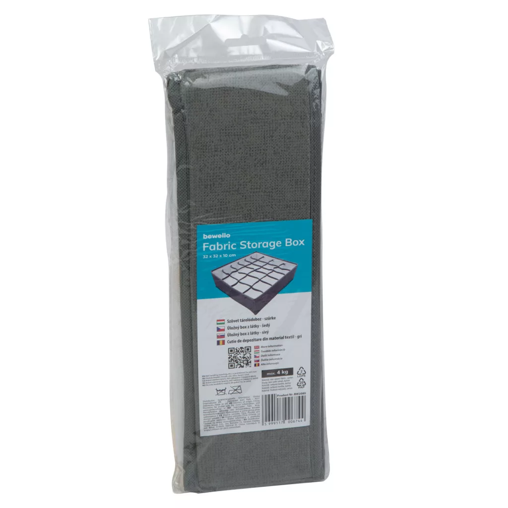 A szövet tárolódoboz tökéletes választás lehet ruhák, játékok vagy bármely más tárgy rendezett tárolásához. A használaton kívüli, kis helyen történő tárolást biztosítja, hogy kivehető az alja, mely után könnyen összezárható és tárolható.