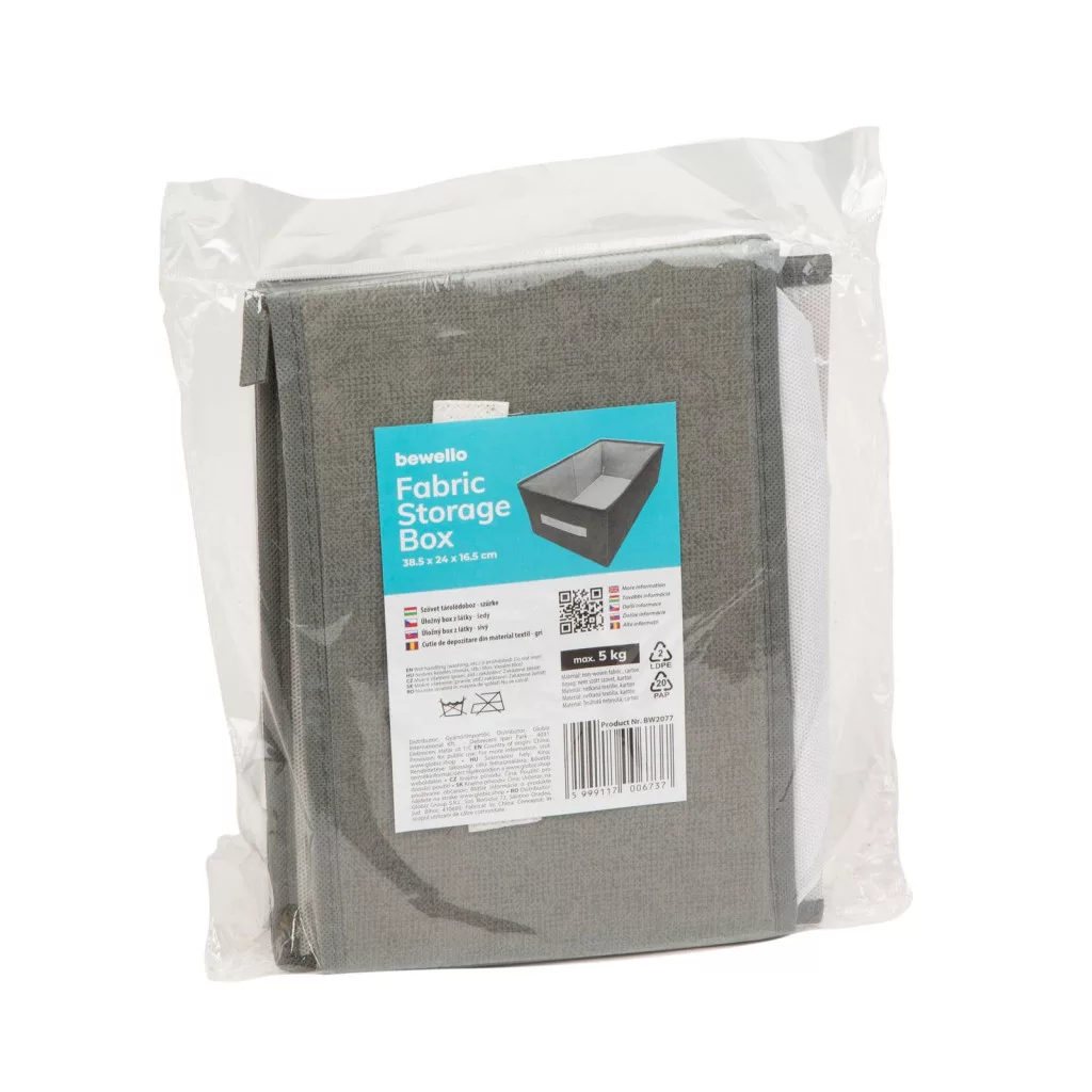 A szövet tárolódoboz tökéletes választás lehet ruhák, cipők, játékok, könyvek vagy bármely más tárgy rendezett tárolásához. A használaton kívüli, kis helyen történő tárolást biztosítja, hogy kivehető az alja, mely után könnyen összezárható és tárolható.