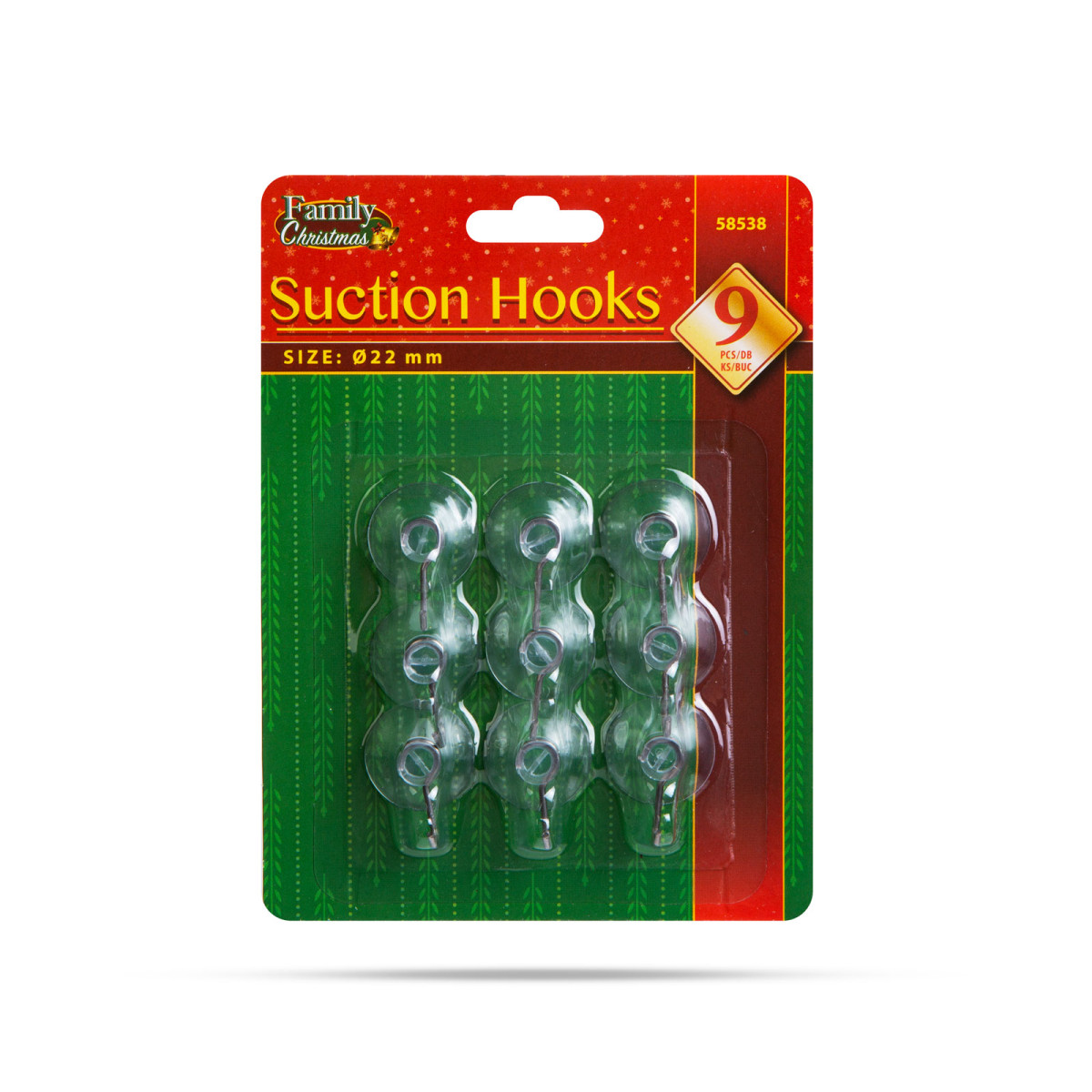 9 darabos akasztó szett, mely tapadókorongos hátuljának köszönhetően stabilan fennmarad a síkfelületeken.