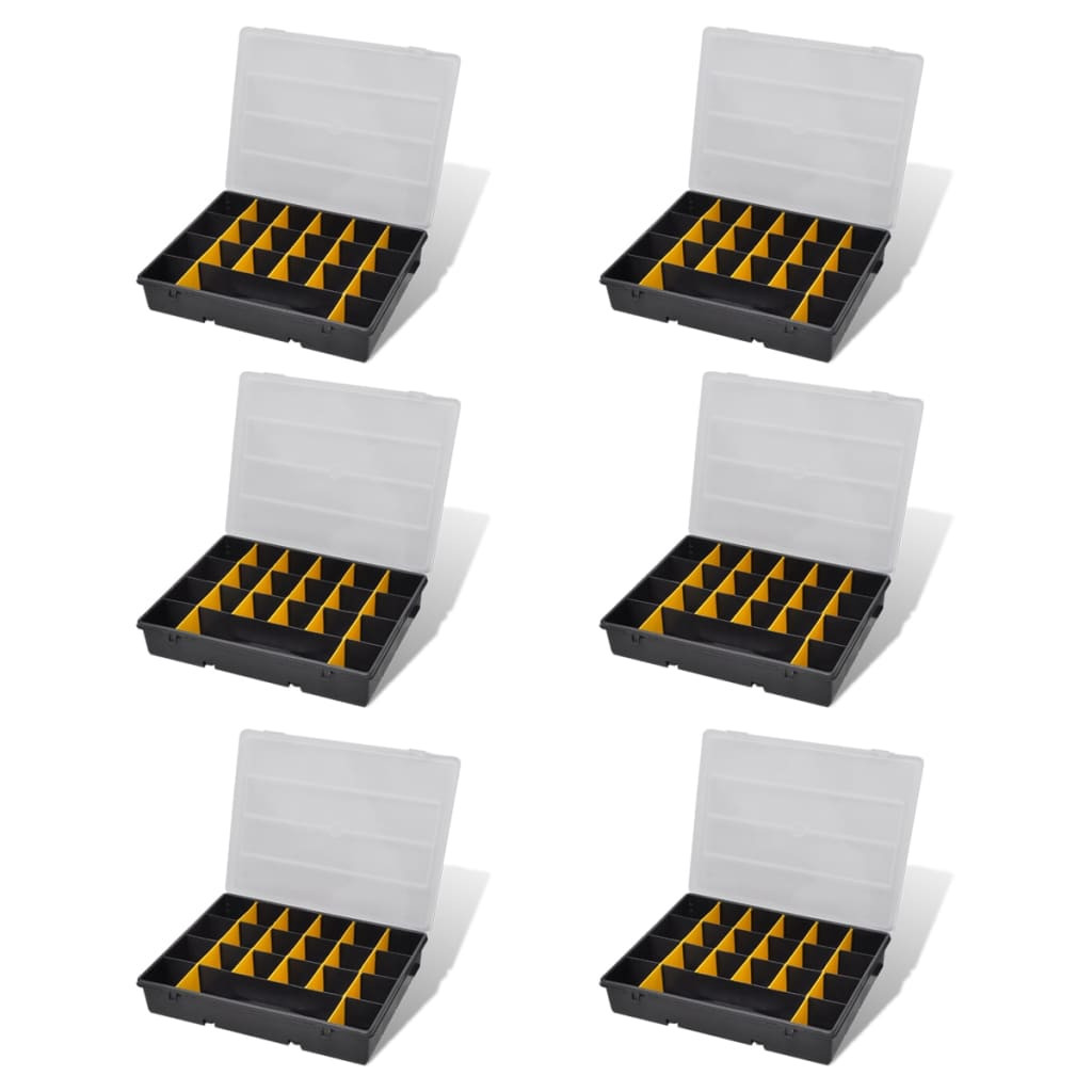 Ez a magalapozott szerszám doboz készlet 6 db-os, ideális tárolására olyan eszközök, mint anyák, csavarok, egyéb apró alkatrészeknek. Minden szerszám doboz tartalmaz 21 rekeszt, ami biztosan segít fenntartani a kisebb szerszámokat rendbe, és kényelmes a későbbi használatra.