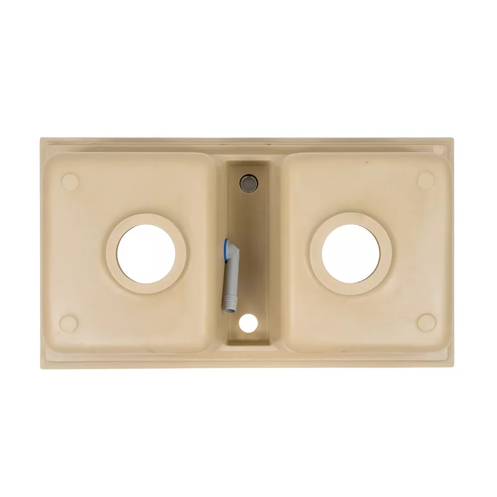 A Tia szögletes két medencés gránit mosogató bézs színben a konyhád új központi elemévé válik. Két medence biztosítja a kényelmes és hatékony munkavégzést, miközben a Bézs gránit kivitelezés az elegancia és a stílus jegyében tündököl.